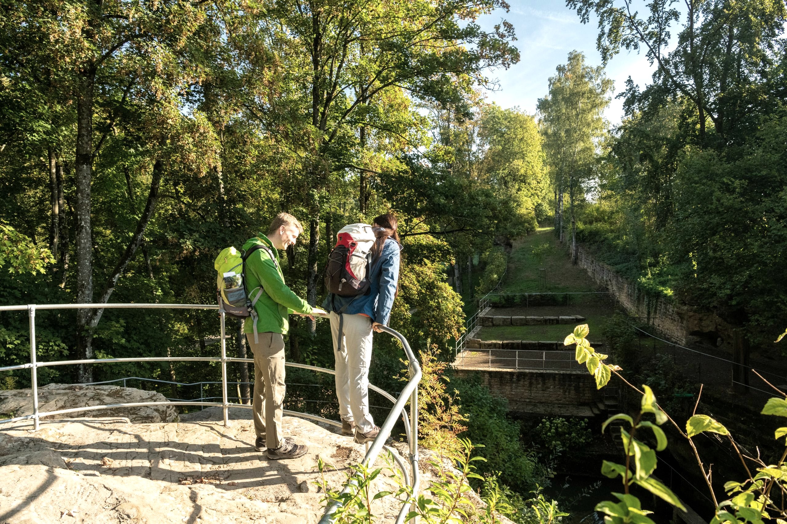 Wandertipp: Unterhalb des Felsenweihers befindet sich der Startpunkt des Premiumwanderwegs "Felsenweg 6 - Teufelsschlucht" des NaturWanderPark Delux.