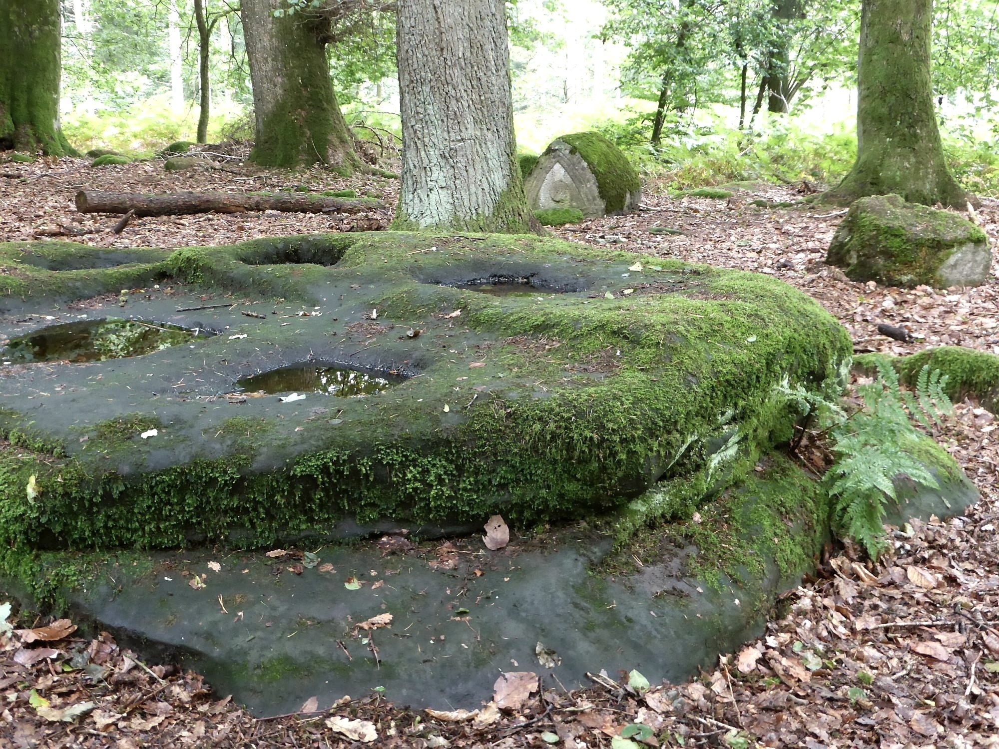 Häuser für die Verstorbenen Im 2. Jahrhundert n. Chr. legten die Bewohner einer nahe gelegenen Siedlung an diesem Ort einen Bestattungsplatz an. Die flachen Sandsteinfelsen wählten sie sicher mit Bedacht aus: In den Stein meißelten sie eckige Vertiefungen oder fügten geglättete Flächen ein, die dann die Totenasche und kleinere Gefäße aufnahmen. Auch steinerne Kisten sind in dem Gräberfeld zu sehen. Die kleinen Gräber waren mit haus- oder dachförmigen Steinen, sogenannten Hüttengrabsteinen, oder mit Halbwalzensteinen überdeckt. So gab man den Toten eine Wohnung, wie sie sie im Leben gehabt hatten!