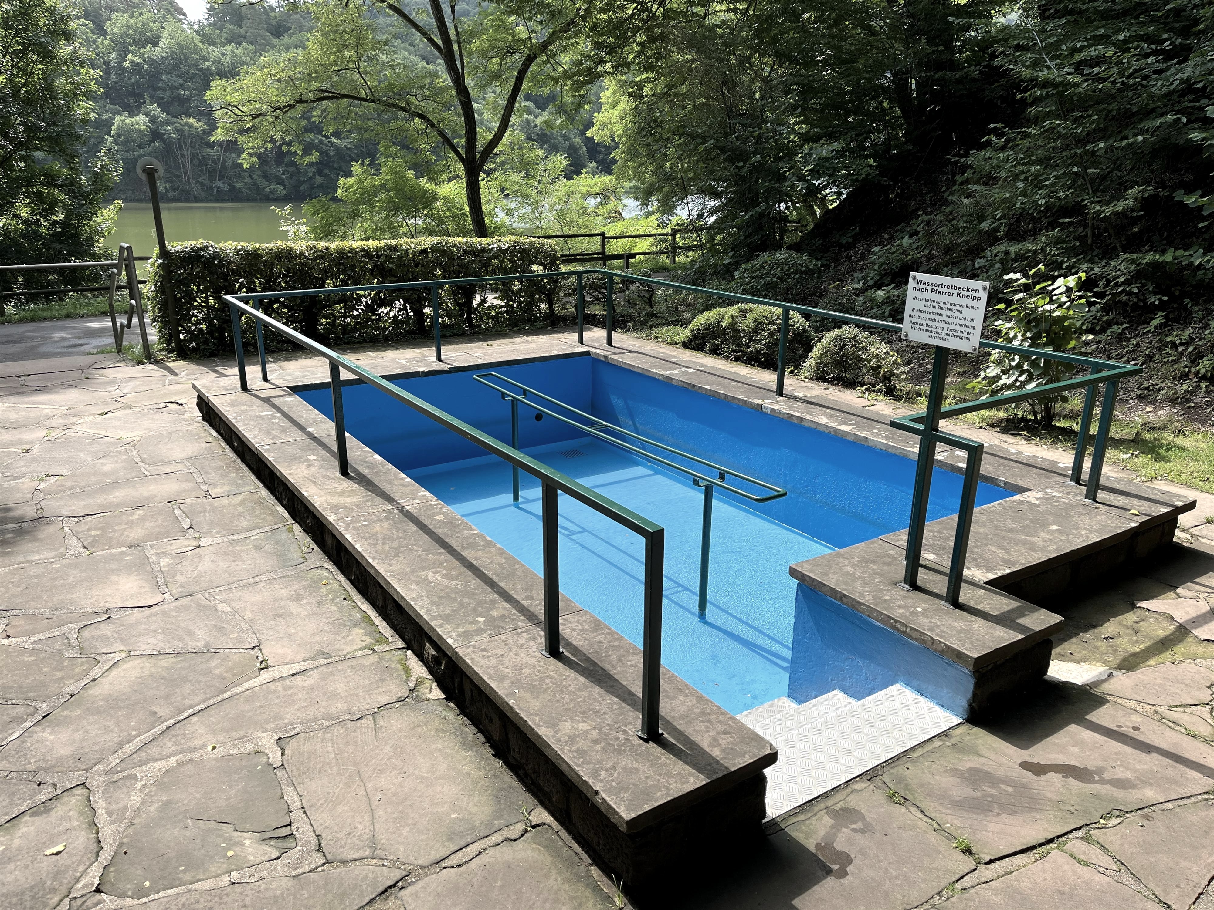 Das Wassertretbecken befindet sich direkt am Stausee-Uferweg. Hier können nicht nur müde Wanderer ihre Beine erfrischen, sondern einige Runden durch das kühle Nass sollen auch gut auf Herz und Kreislauf wirken.