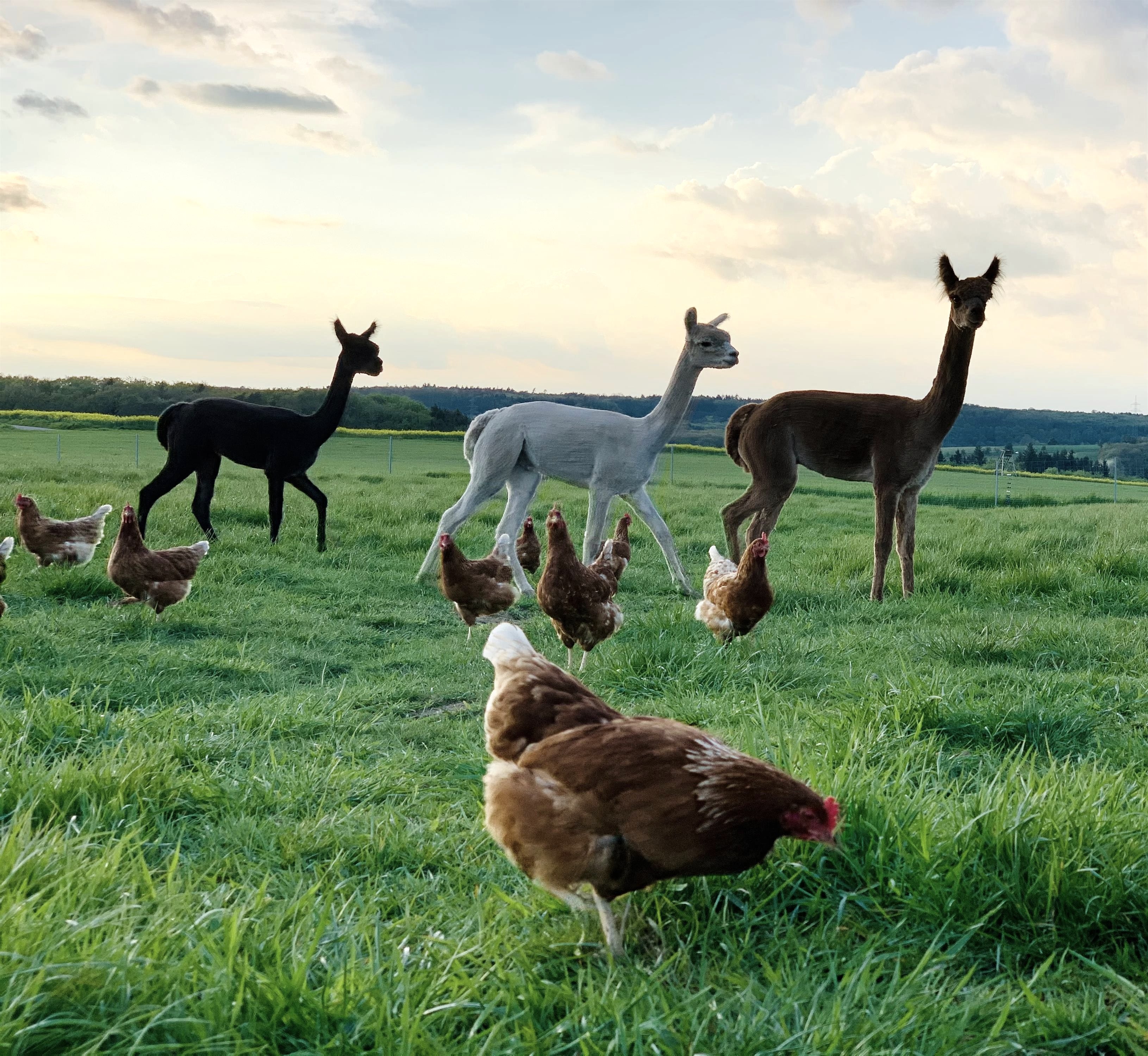 In unserem 24/7 Selbstbedienungshofladen bieten wir euch unsere und auch regionale Kooperationsprodukte an, z. B. Eier, Nudeln, Eis, Milch, Joghurt, Müsli, Mehl, Fleisch- und Wurstwaren, Käse, Honig, Alpakaprodukte wie Seifen, Socken, u.v.m.