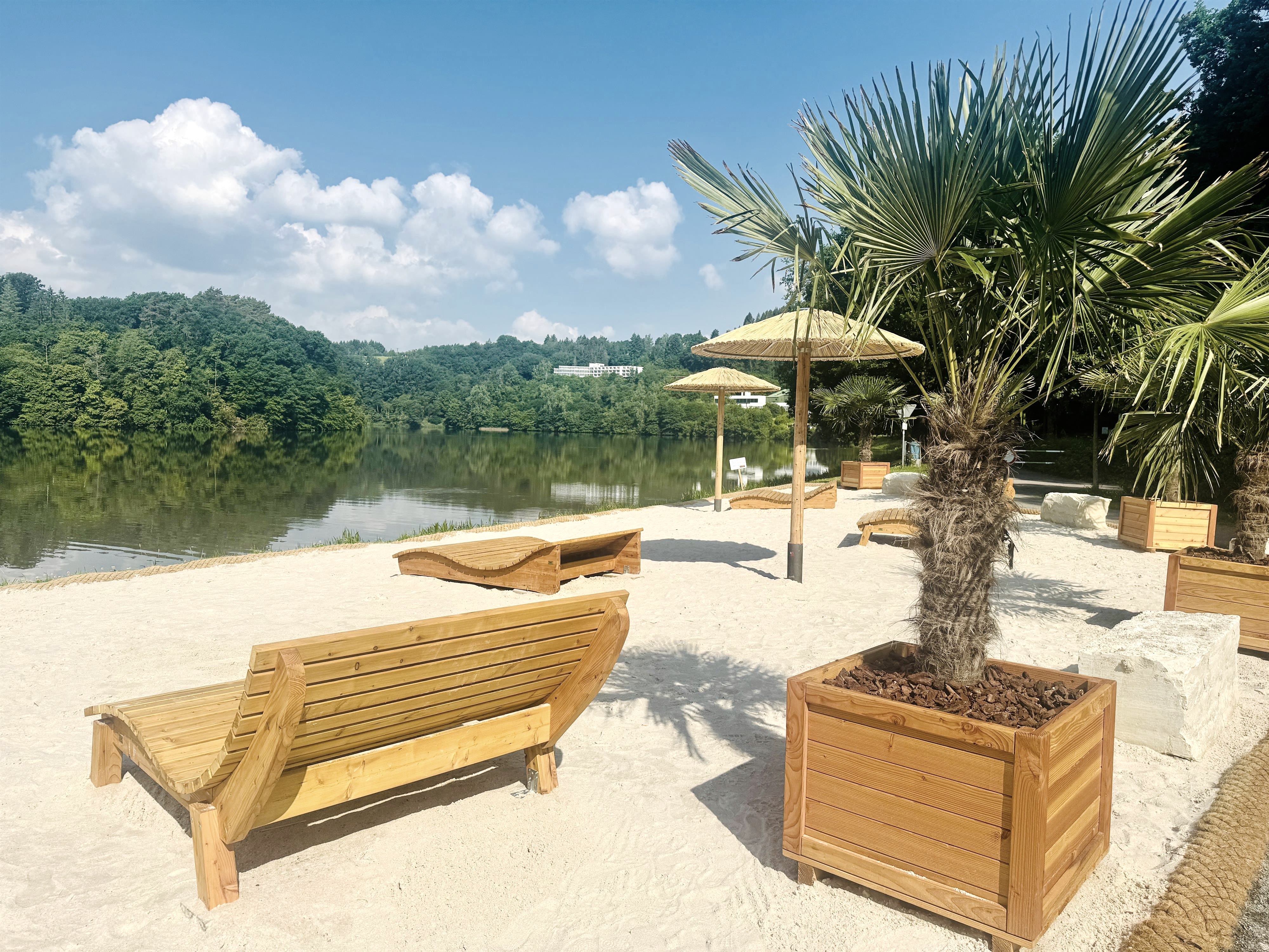 In den Sommermonaten herrscht Strand-Flair am Stausee. An prädestinierter Stelle, in der Nähe des Parkplatzes am Kiosk, befindet sich der Stausee-Strand. Liegemöglichkeiten laden zum Entspannen ein. Wer möchte, kann am Strand ein privates Picknick machen oder auf das Angebot des Kiosk zurückgreifen. Nahe des Strands befindet sich ein Fotopunkt "Stausee mit Herz".