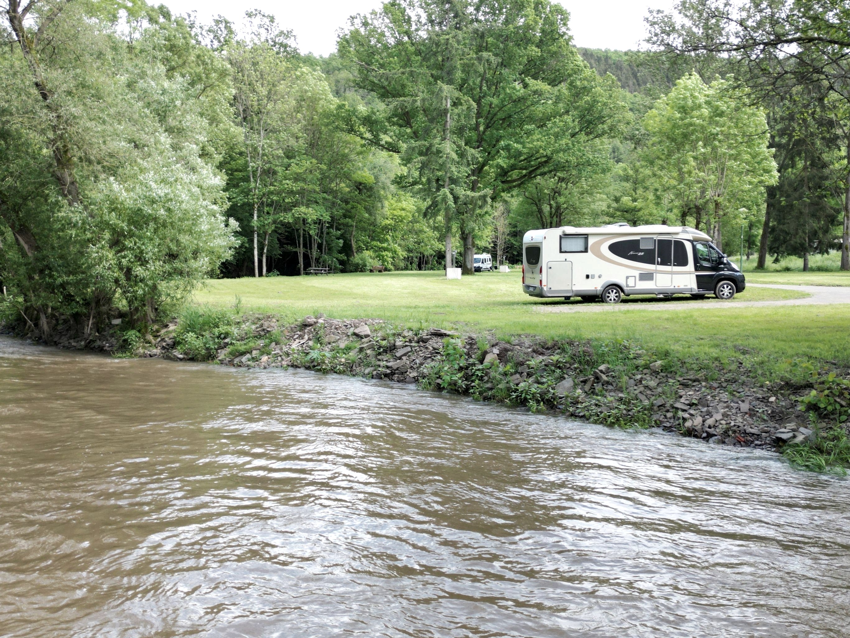 Der im Frühjahr 2024 eröffnete Stellplatz befindet sich in der Ortsrandlage von Waxweiler entlang des Prüm-Ufers. Der Ortskern ist nur wenige Gehminuten entfernt. Er bietet eine Bäckerei und ein Lebensmittelgeschäft in ca. 200m Entfernung. Fußläufig erreicht man mühelos eine Eisdiele, Apotheke und das Haus des Gasteso. Für den Besuch der heimischen Gastronomie benötigen Sie ebenfalls nicht mehr als 10 Minuten.