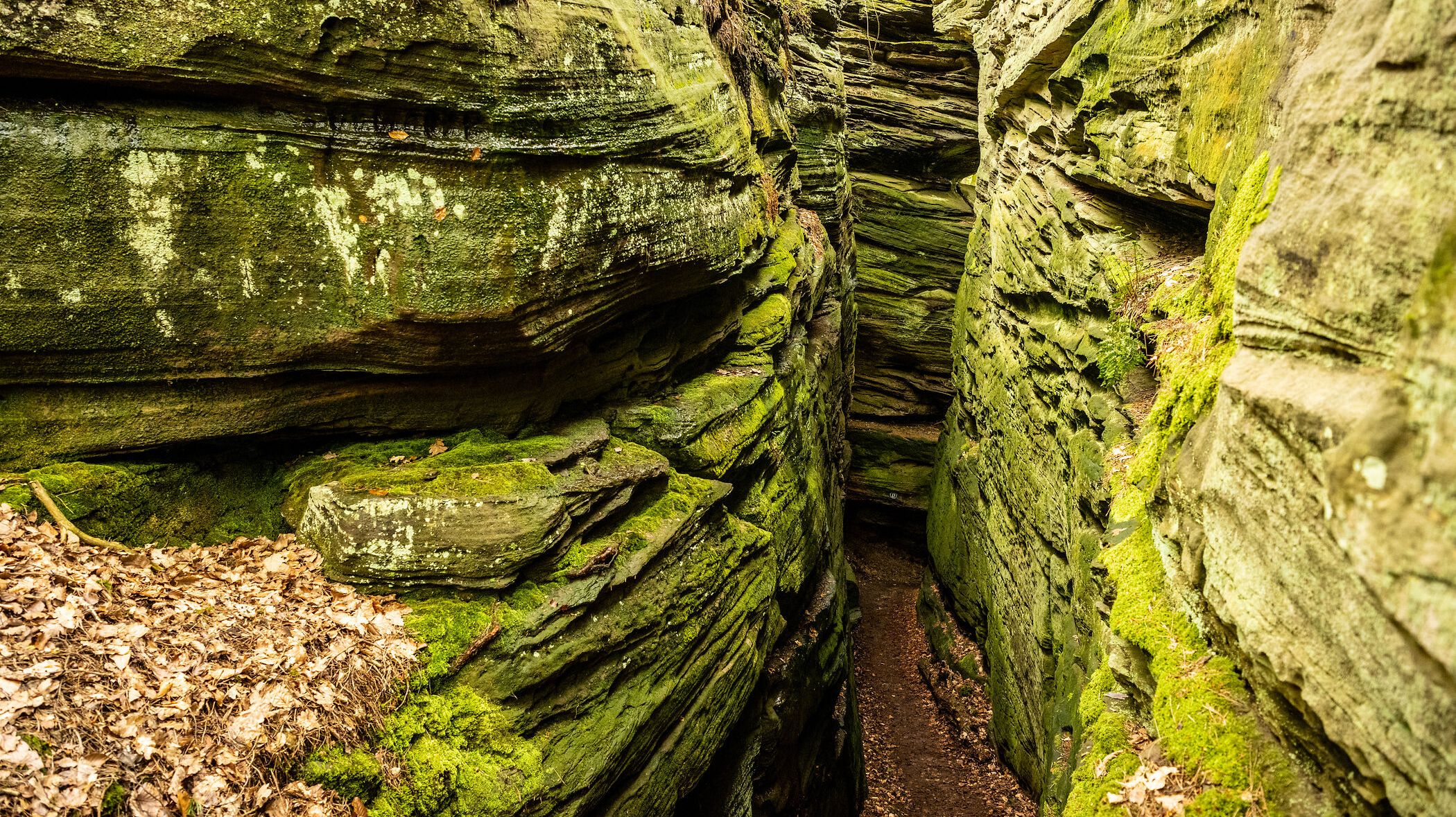 Ein besonders eindrucksvolles Erbe der erdgeschichtlichen Prozesse in der Eifel ist die Teufelsschlucht bei Ernzen. Sie entstand vor etwa 10.000 Jahren in der letzten Eiszeit. Die majestätischen Felsen geben Halt. Sie wirft so schnell nichts um und wer seine Hand an die kühlen Felsen hält, spürt die Kraft aus der Erde.