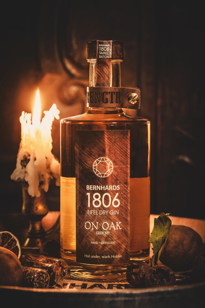 HAND DESTILLED BERNHARDS 1806 is a very complex Eifel Dry Gin with the aroma of the typical regional elderberry. Finely coordinated botanicals give it its distinctive and natural note. Bitter, bitter aromas of distilled juniper berries, combined with light citrus tones of coriander and the sweetish honey note of fresh elderflowers, are combined with other selected botanicals to create a refreshing, spicy gin that can be enjoyed on its own or as a long drink. An aromatic walk through an ancient Eifel elderflower grove.