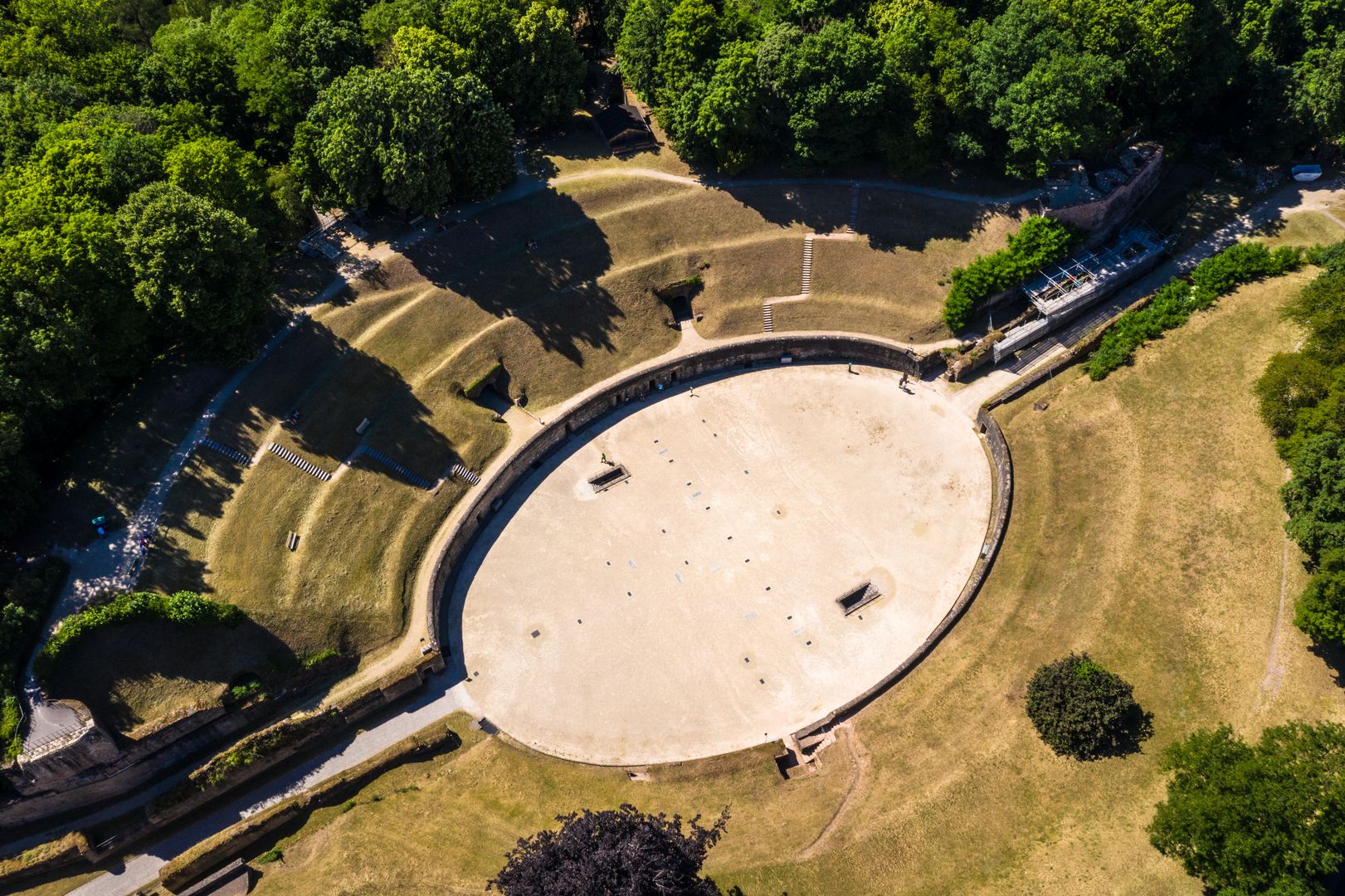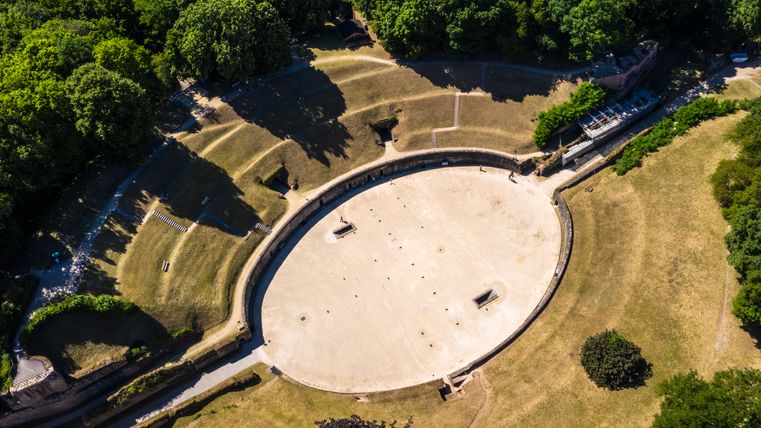The Amphitheater was built towards the end of the 2nd century, and was a place of mass entertainment. The tiered seating was approximately 22 metres high, and held up to 18,000 spectators. The programme showed fights between animals and people. When the Roman Empire came to an end, the Amphitheater was no longer used.