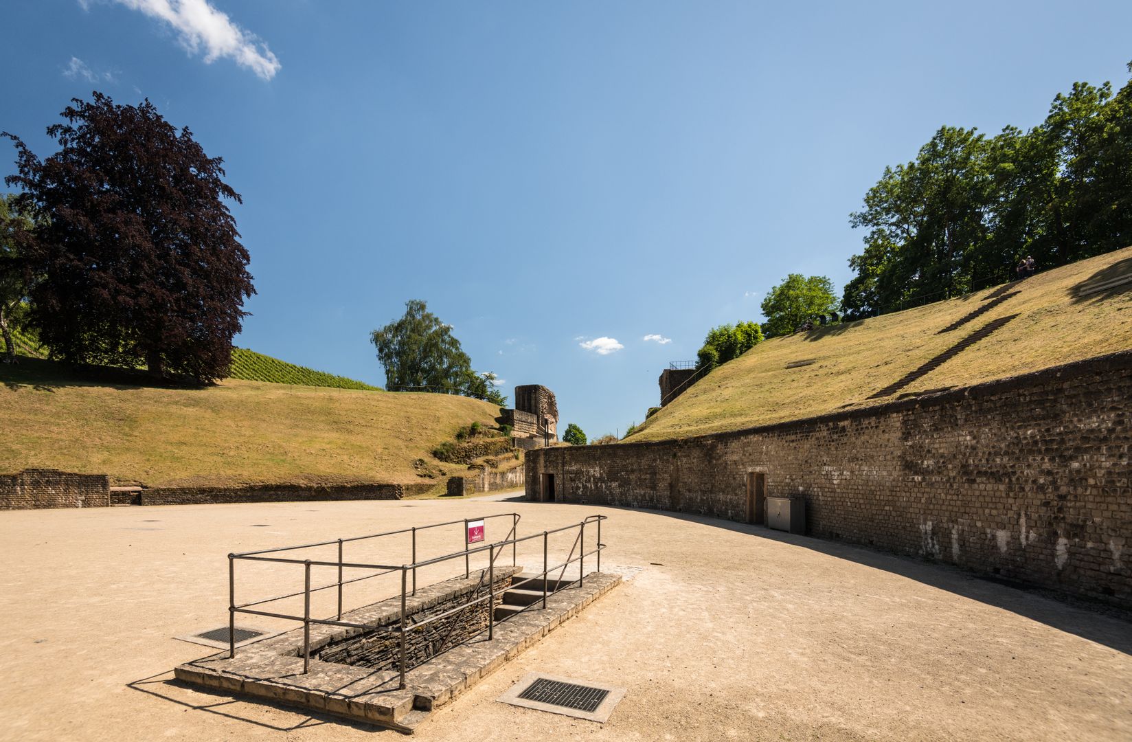 The Amphitheater delighted the population of ancient Trier as a place of entertainment, and can still be visited today including the arena, the tiered seating and the cellars. There was once a stage mechanism: a type of lift that enabled lavish performances to take place in the arena. The cages and the areas in which animals and people used to wait for their fights at the edge of the ring fence can also be visited.