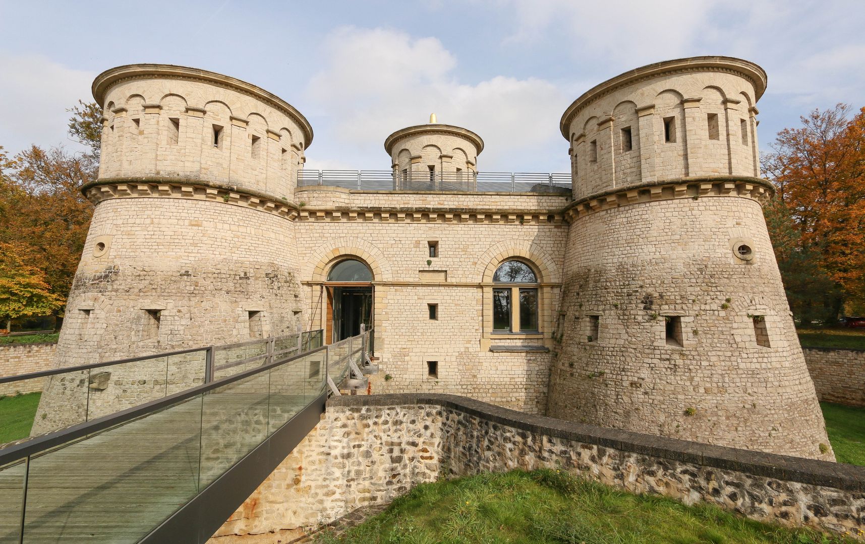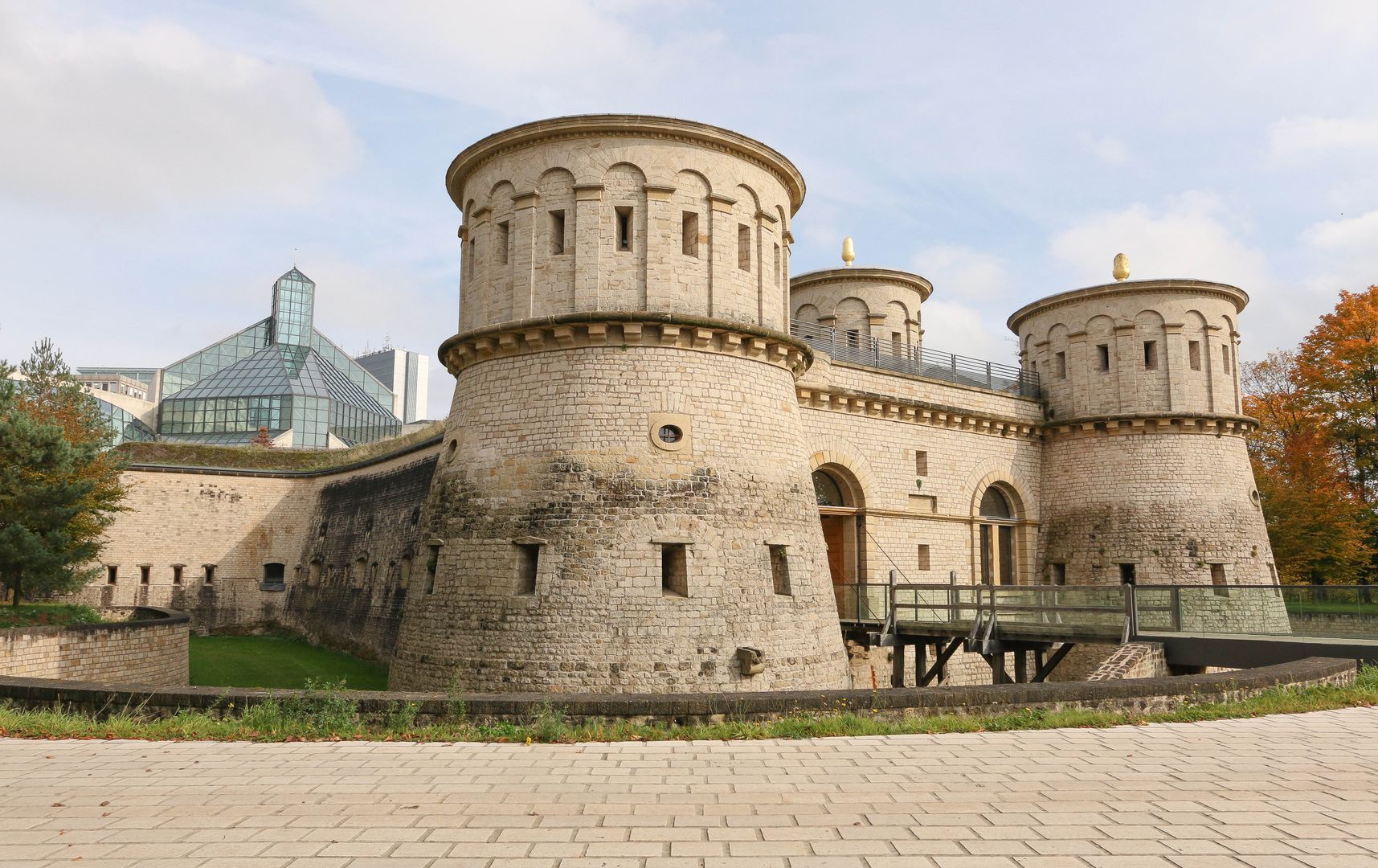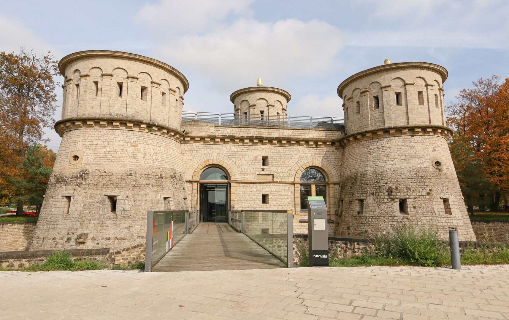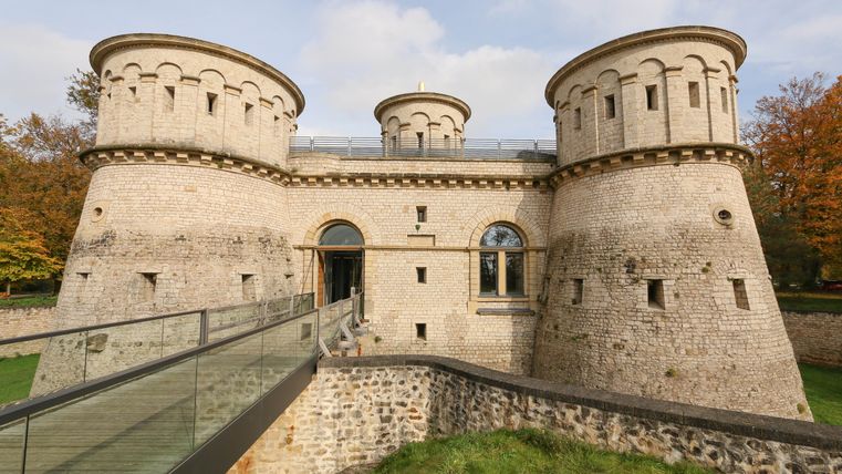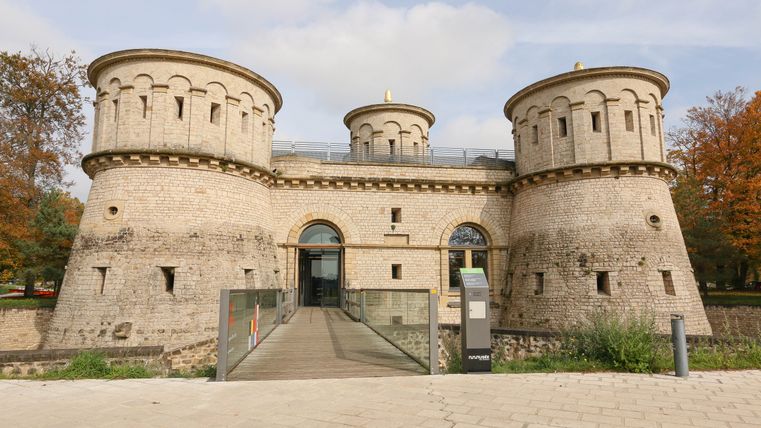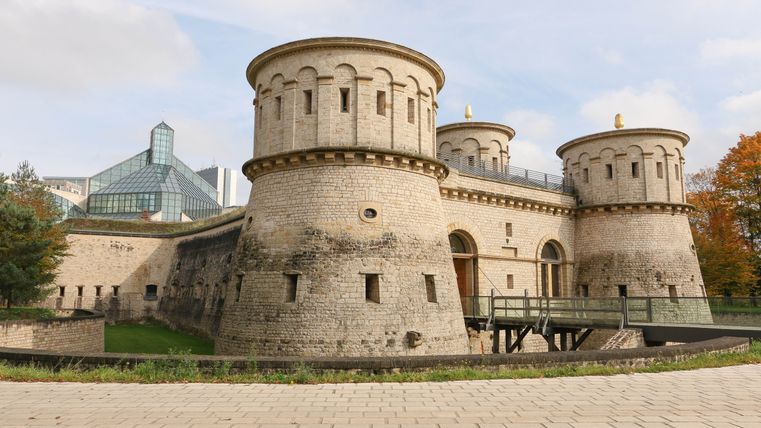 The Musée Dräi Eechelen – fortress, history, identity, inaugurated in 2012, is situated in the extraordinary restored keep of the historic fort Thüngen, built in 1732-33. Each of the casemates in the permanent exhibition illustrates a different era of the fortress and its influence on the country’s history. The tour begins in the Middle Ages with the capture of the city of Luxembourg by the Burgundians in 1443, and ends with the construction of the Pont Adolphe in 1903. More than 600 objects and original documents, many of which have never been shown before, highlight the diversity of the collections. A special room houses a selection of historical photographs which present the fortress immediately before and after it was razed. The historic building of the museum constitutes in itself an important element of the permanent exhibition. With its impressive underground galleries and mines, it corresponds to a large extent to the original condition during the last phase of its expansion in 1836/1837. The visitor is invited to explore important themes of the permanent exhibition through an interactive database and audio-visual documentation in the multimedia room. Free audio guides supply detailed explanations for many objects in French, English, German and Luxembourgish. An auditorium regularly provides the facilities for conferences or screenings in relation to the exhibitions. The first floor is dedicated to temporary exhibitions.