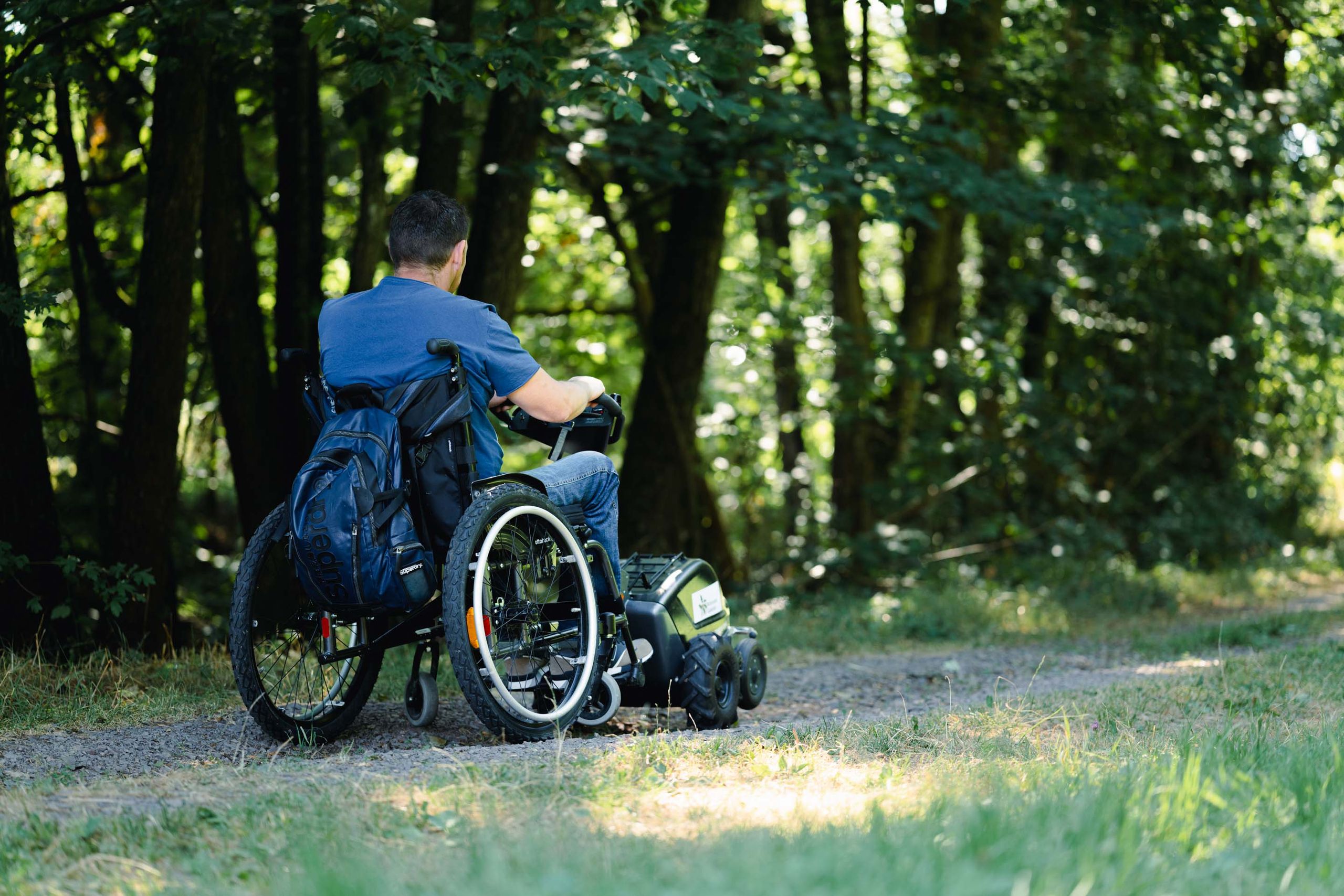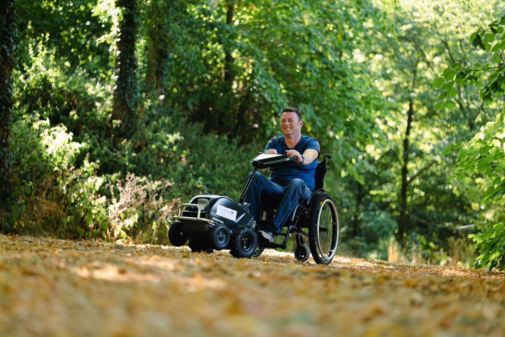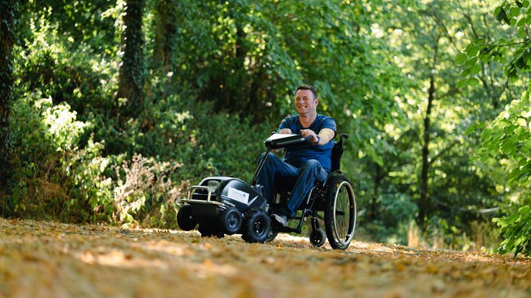 The Swiss Tracs give wheelchair-bound adults and children more mobility and independence in everyday life. The electric drive can be connected to the wheelchair in just a few seconds. This allows wheelchair users to travel up to 20 km independently and pass over ledges or other obstacles without tipping over. Slopes and uneven terrain can be overcome effortlessly with a traction device, even with limited gripping function and little strength in the arms.