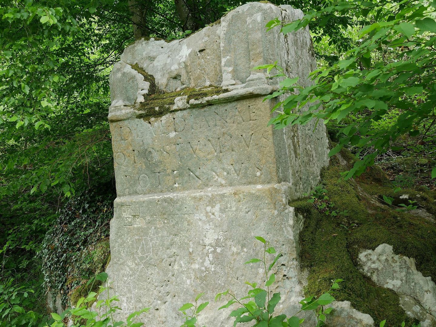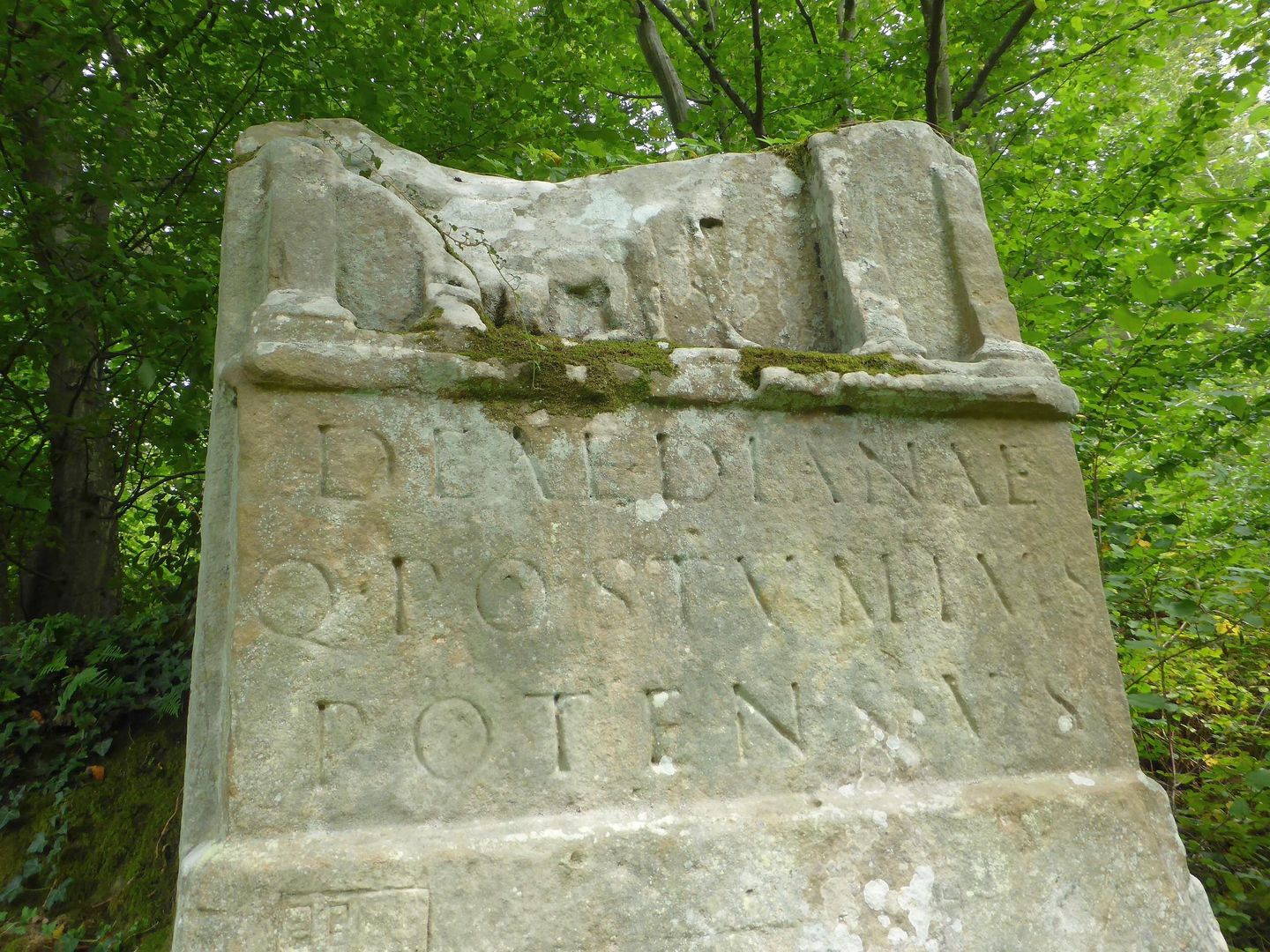 Deae Dianae Q(uintus) Postumius Potens V(otum) S(olvit) - "To the goddess Diana, Quintus Postumius Potens (dedicated the stone and) fulfilled the vow.". This is the inscription on the base of the monument in the middle of the forest at the foot of Niederburg Castle, not far from Weilerbach Castle. It is not known why the aforementioned man had a relief with an inscription carved out of the sandstone rock here in the 2nd century. Perhaps he had particularly good hunting luck or he invoked the goddess to protect the forest. According to a brochure, Diana was the guardian of the forest and hunting, a kind of "heavenly chief forester".