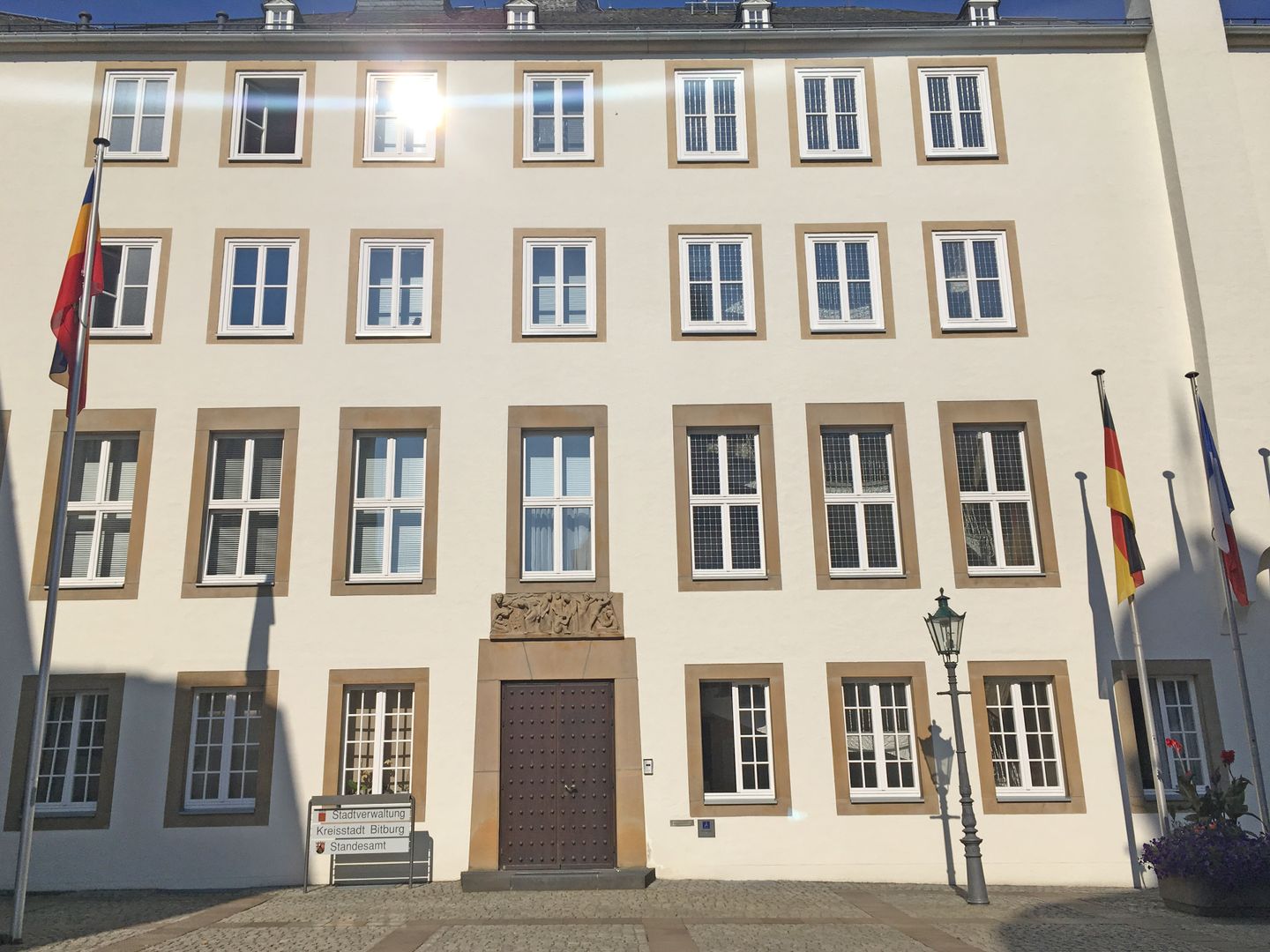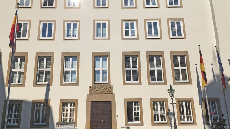 In Bitburg there is an e-bike charging station to the right of the town hall.