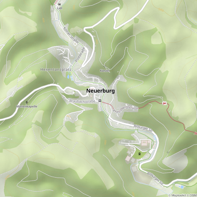 The charging station is located directly at the entrance to the tourist information point or kiosk at the market in Neuerburg.