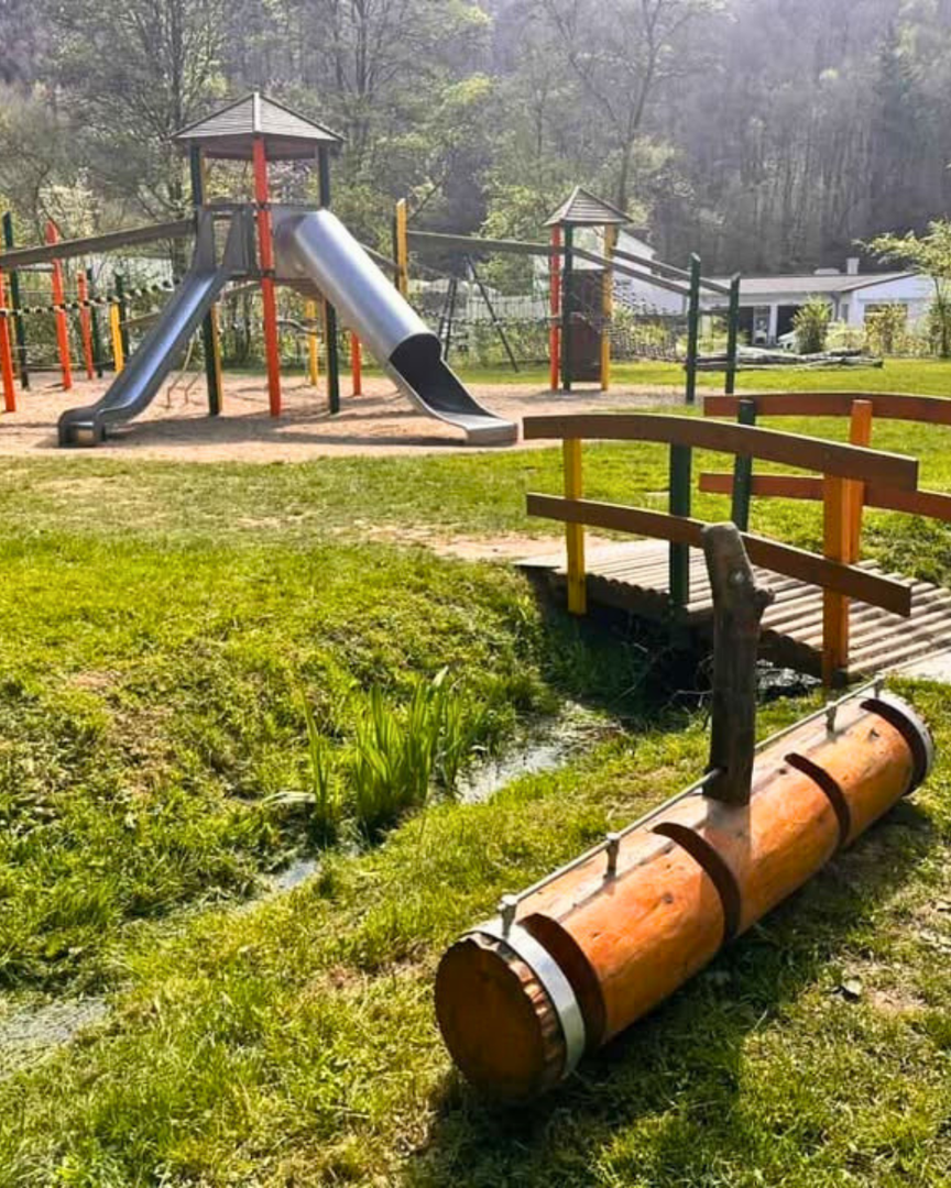 The playground at the beginning of the spa park in Prüm offers a wide range for little explorers. In addition to various climbing and sliding options, hills, forest, and water invite for imaginative adventures.