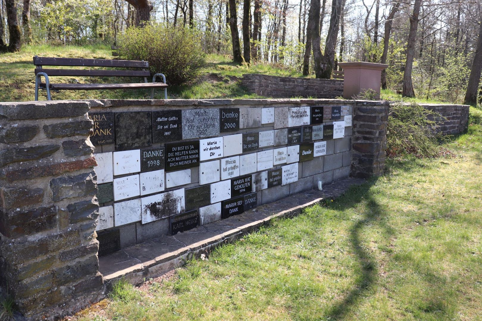 The memorial with its many thank-you tablets is always a popular place of worship. A procession takes place every year from the parish church to the Marian column on a maison Sunday. In 1998 the parish community celebrated the 50th anniversary of the Marian column with several hundred believers. In recent years, the tall trees have blocked the view of the Marian column. The board of trustees of today's Gerhard Faber Foundation took on the redesign of the entire facility in 2004. In cooperation with the local population, the square around the Marian column was completely renovated.