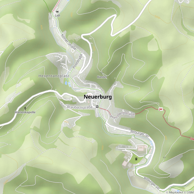 The market square and many other cultural highlights of Neuerburg can be seen on the "Neuer Burg Weg" of the NaturwanderPark Deluxcan be explored.