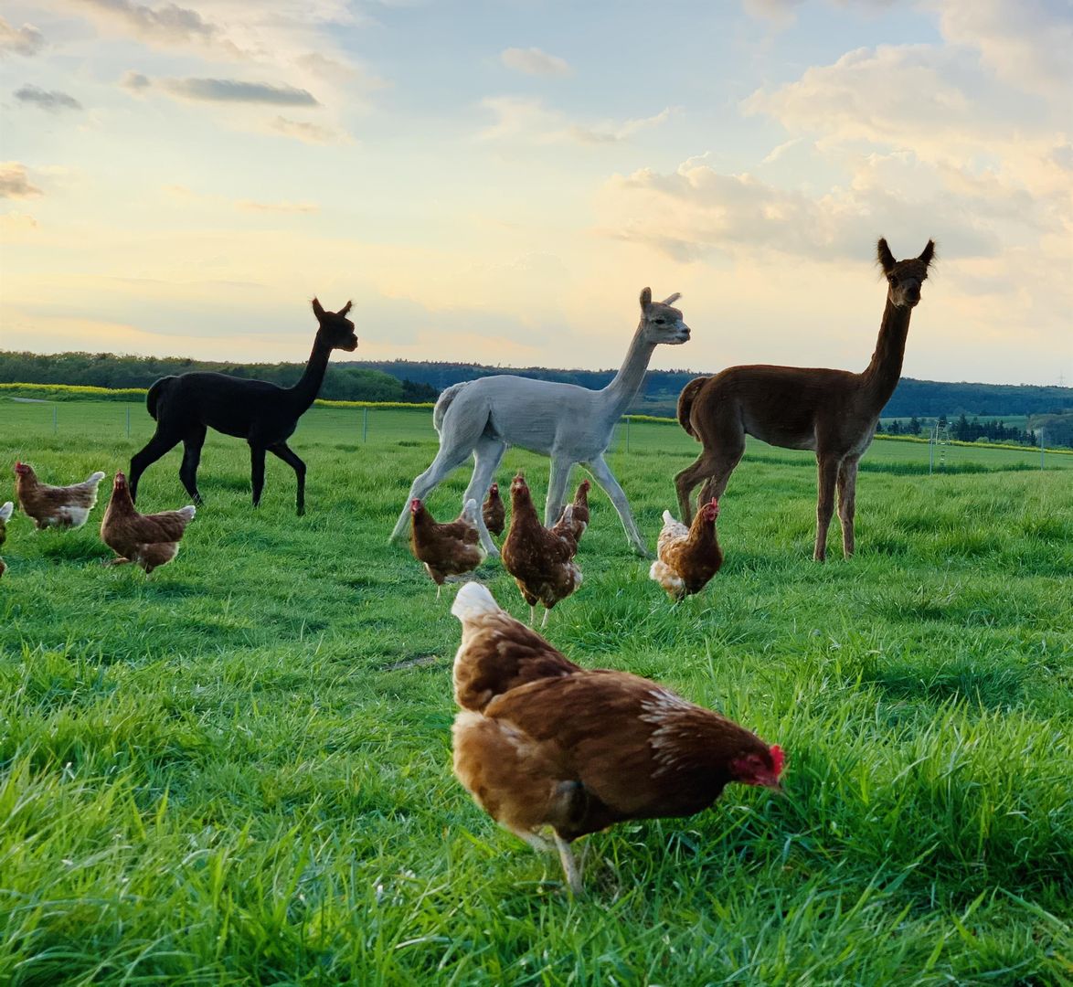 In our 24/7 self-service farm store we offer regional products, including eggs, pasta, ice cream, milk, yoghurt, muesli, flour, meat and sausage products, cheese, honey, alpaca products such as soaps, socks, and much more.