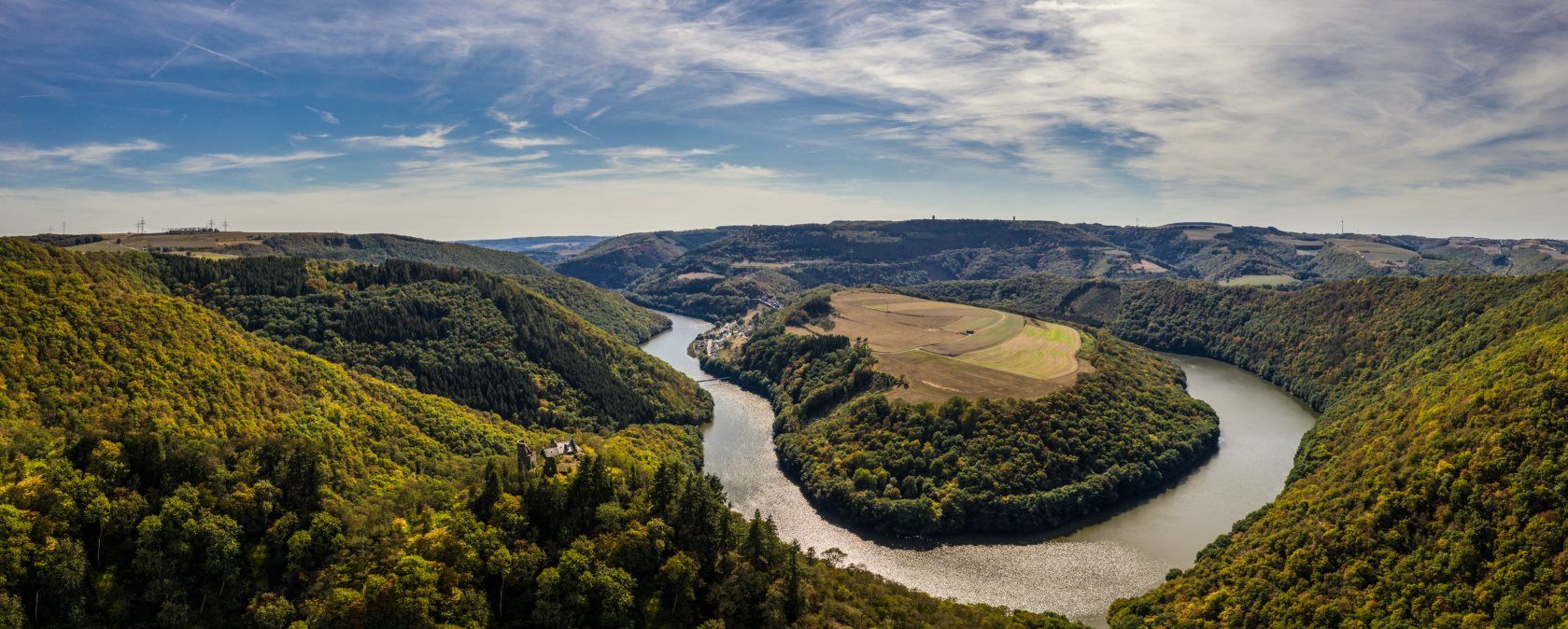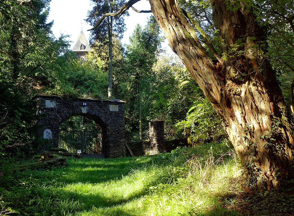 Of what you see, much is man-made. Until the 1950s, the Our made its loop around Bivels as a small stream, which looked very different then. The St. Nicolas mountain opposite still had a real knoll and there was no reservoir yet. The landscape bears witness to one of the most imposing construction projects in Luxembourg in the middle of the last century. Almost invisible, one of the largest pumped storage power plants in Europe is located here. Deep in the rock, the floods rush in giant tubes between the reservoir and the upper basin on Mont St. Nicolas. Much older mining history is told by the copper mine in Stolzemburg. Much older still: the history of Falkenstein Castle, of which the residential building and castle ruins are still preserved today.