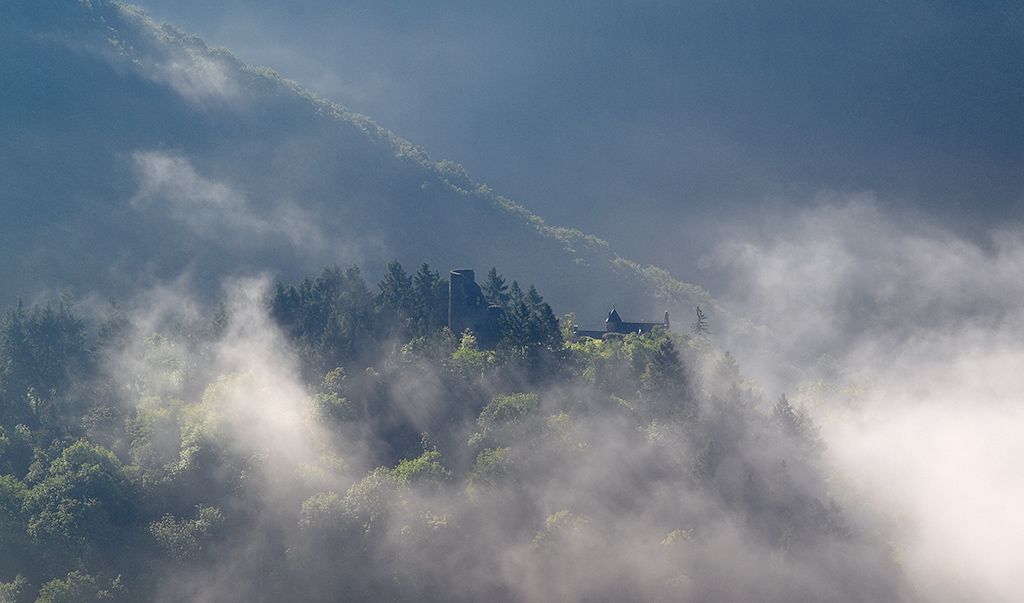 Now let's go! Like the other Nat'Our routes, this one is a German-Luxembourg circuit. You start in the Luxembourg village of Bivels, cross the reservoir - and thus the border - on the blue steel bridge and climb along forest paths to the Falkenstein ruin, which is privately owned. To the right of the entrance portal you can take a rest and immediately you are surrounded by a fairytale-like Sleeping Beauty romance, which invites you to linger, cuddle and dream.