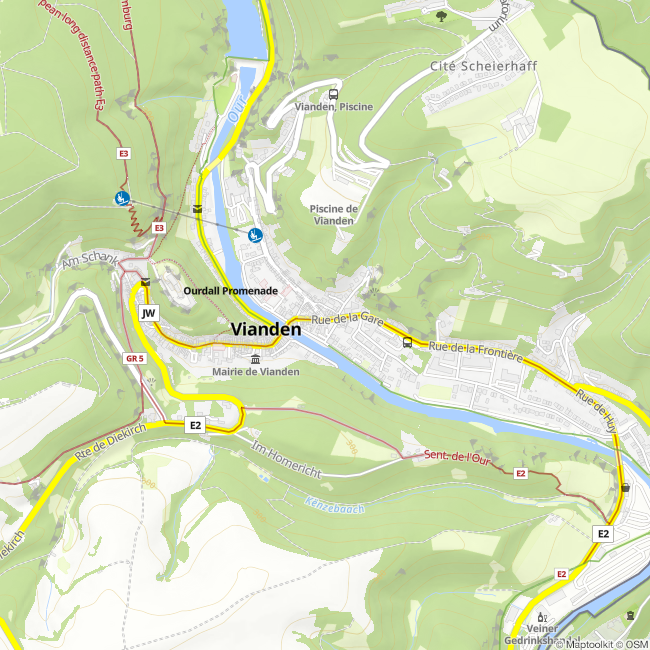 The first-class family-hotel Petry is situated in the centre of the medieval town Vianden. It offers you a sunny terrace, a children`s playground and a private car parking. The hotel has three floors with clean, modern rooms which are equipped with showers or bath, WC, telephone, alarm clock and cable-tv. Furthermore there is a fitness-room.