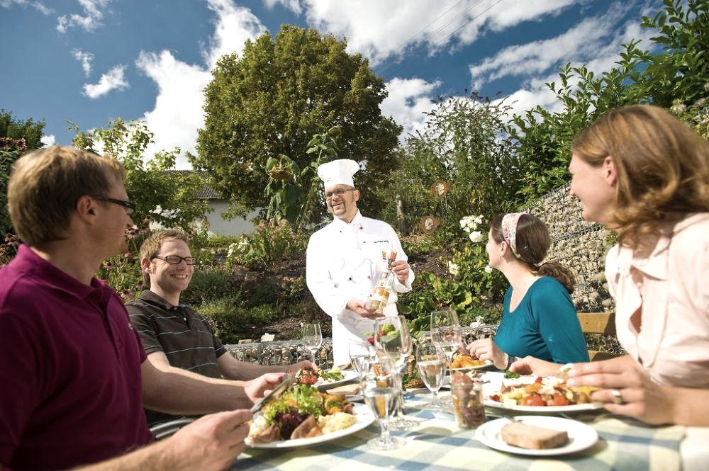 Notre maison d'hôtes l'auberge Herrig reconnue depuis plus de 140 ans est située dans le petit village agricole de 400 habitants, Meckel, entre Bitburg et Trèves. Nous proposons à nos clients une cuisine créative avec des produits régionaux de l'Eifel.