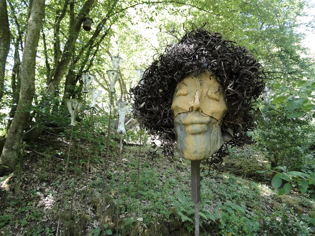 Ceux qui se rendent dans l'Eifel le font généralement dans le but de découvrir et de profiter d'une nature aussi authentique que possible. "Personne ne cherche vraiment l'art ici", reconnaît même Heidemarie Knopp. Avec son mari, elle a mis en place et développé pendant 25 ans quelque chose qui n'a pas d'équivalent dans le sud de l'Eifel. Dans le jardin d'art et de sculptures de la famille Knopp, le paysage intact des vallées de Raden et de Michelbach se fond avec les sculptures, les installations et les petits pavillons d'exposition qui s'intègrent de manière organique dans le terrain naturel en pente. L'art présenté est presque exclusivement constitué d'œuvres de Heinz (Tobbi) Knopp, conçues avec l'humour et l'inspiration qui lui sont propres. Il est difficile de classer son œuvre variée du point de vue stylistique. Le terme "surréalisme féerique" est le plus approprié pour décrire les œuvres en papier mâché, bois, métal et divers matériaux de recyclage. Le jardin d'art et de sculptures de Knopp est un must pour tout amateur de nature et de culture ! Heidemarie Knopp se fera un plaisir de guider les amateurs d'art et de nature intéressés à travers l'œuvre de son mari et le jardin idyllique, sur rendez-vous.