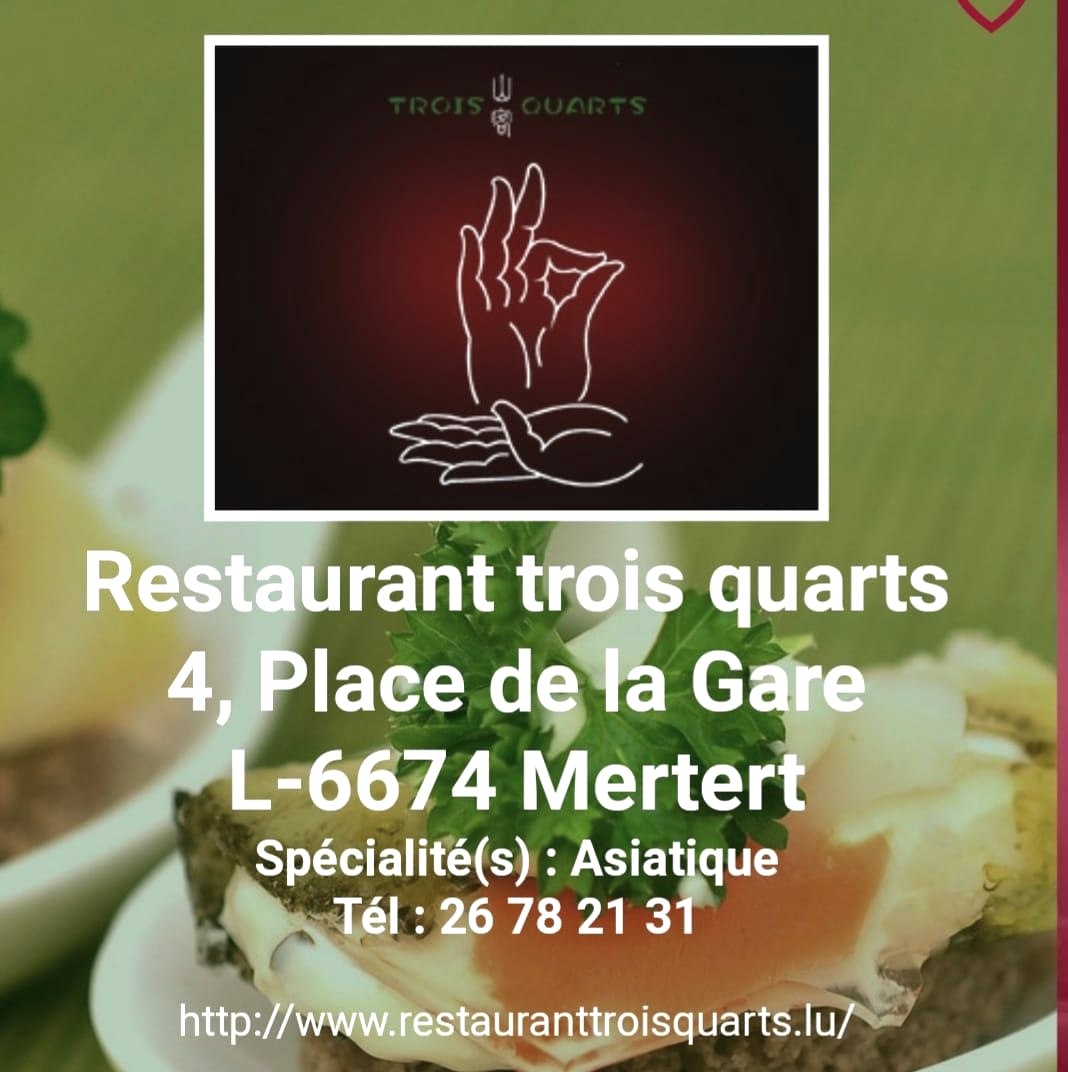 Restaurant Trois QuartsMertertafficher plus d'heures d'ouverture Restaurant asiatiquemehr lesen Partager: