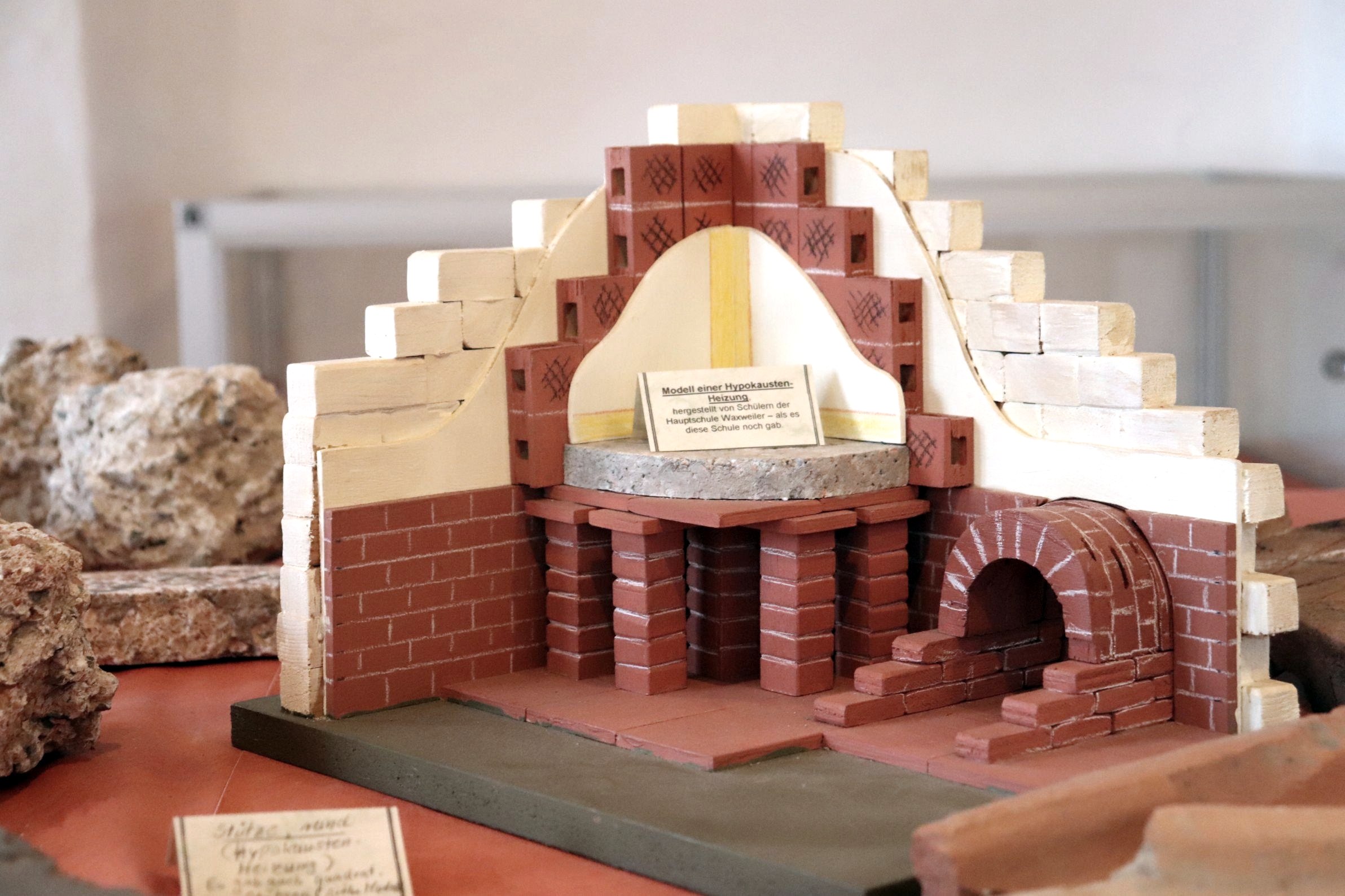 Installé dans une salle de classe depuis 2003 avec de nombreuses heures de bénévolat, ce «musée à l'école» abrite de nombreuses trouvailles de la villa romaine sur le Hüttenberg, mais aussi de nombreux prêts et cadeaux de collectionneurs privés qui ont généreusement soutenu l'association. Le musée a été officiellement inauguré en juin 2005. Néanmoins, il y a déjà un grand nombre de découvertes à visiter dans le petit musée, comme c'était le cas dans les nombreux manoirs romains de la région de Trèves. La culture vivante qualitativement étonnante et le mode de vie haut de gamme peuvent être reconnus ici. Les découvertes montrent que le toit était fait de dalles de pierre clouées. Des kilos de clous ont été trouvés sur le clou de la plaque de toit, qui avait été préservé par le durcissement au feu (brûler le système).