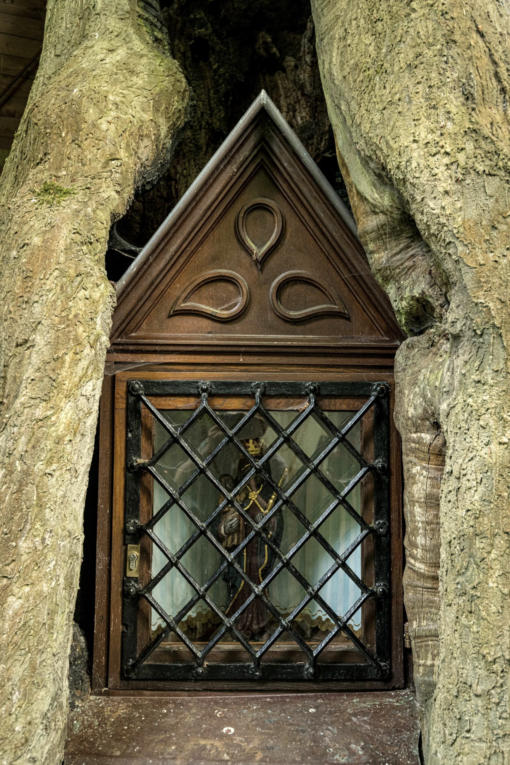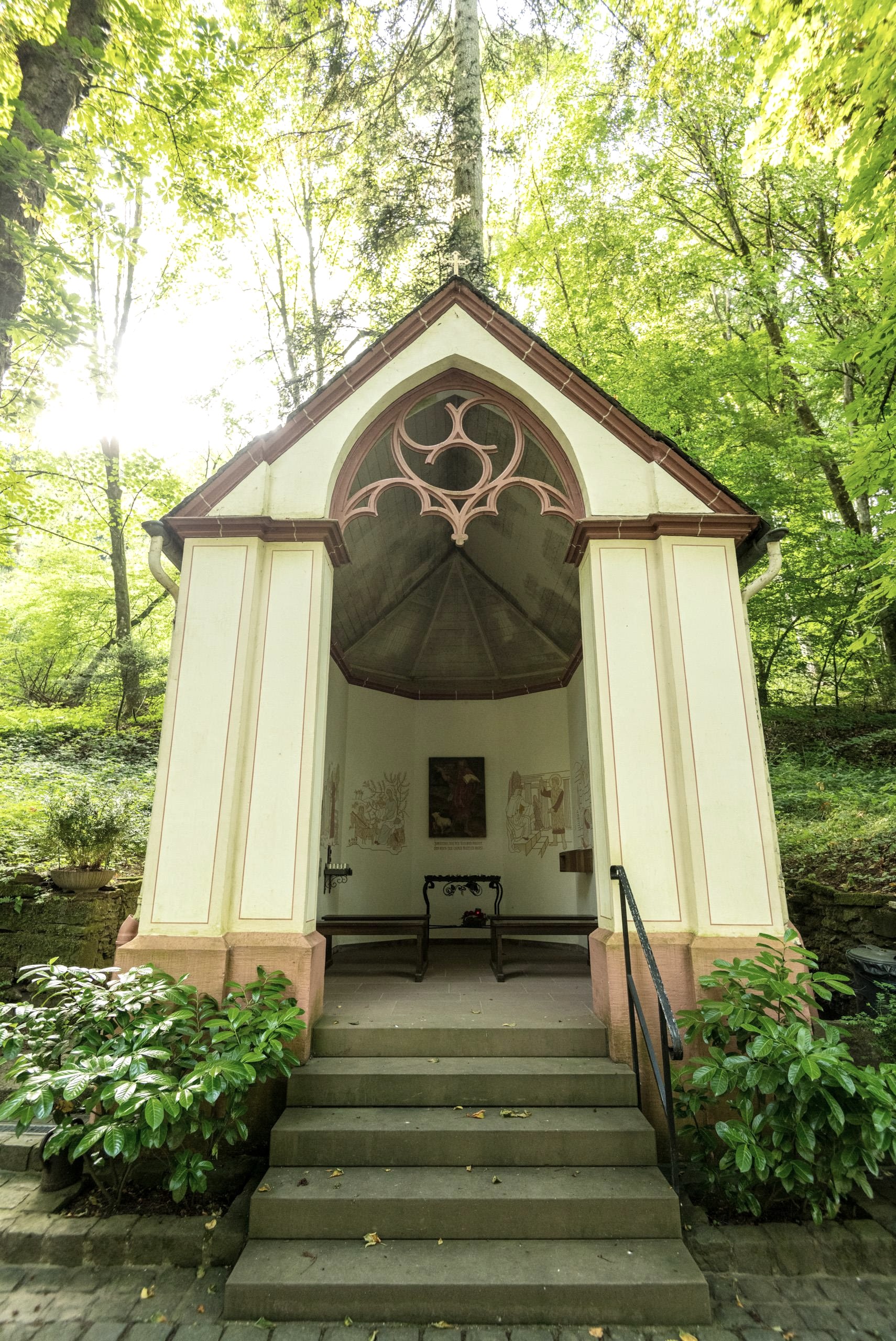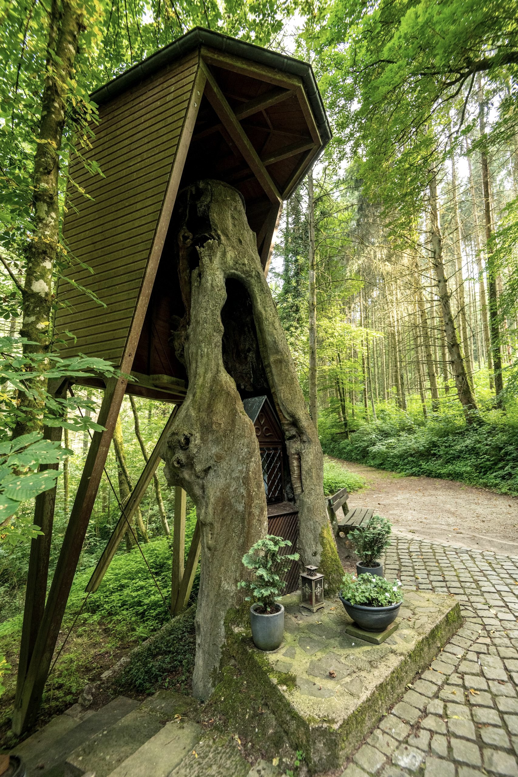 Selon la légende, le chevalier Kuno von Falkenstein aurait cherché ici à se protéger de son rival de Vianden. Sainte Marie lui aurait alors indiqué cet arbre creux dans lequel il aurait pu se cacher. En souvenir, une madone de 46 cm, une réplique de la madone d'Altötting du 17e siècle, se trouve dans un chêne de 700 ans. L'âge et la fumée des bougies ont donné à la statue de la Madone une couleur brun foncé, presque noire. Des images de stations des sept douleurs de Marie, créées par le sculpteur J. Hess au 19ème siècle, mènent à ce lieu de pèlerinage isolé.