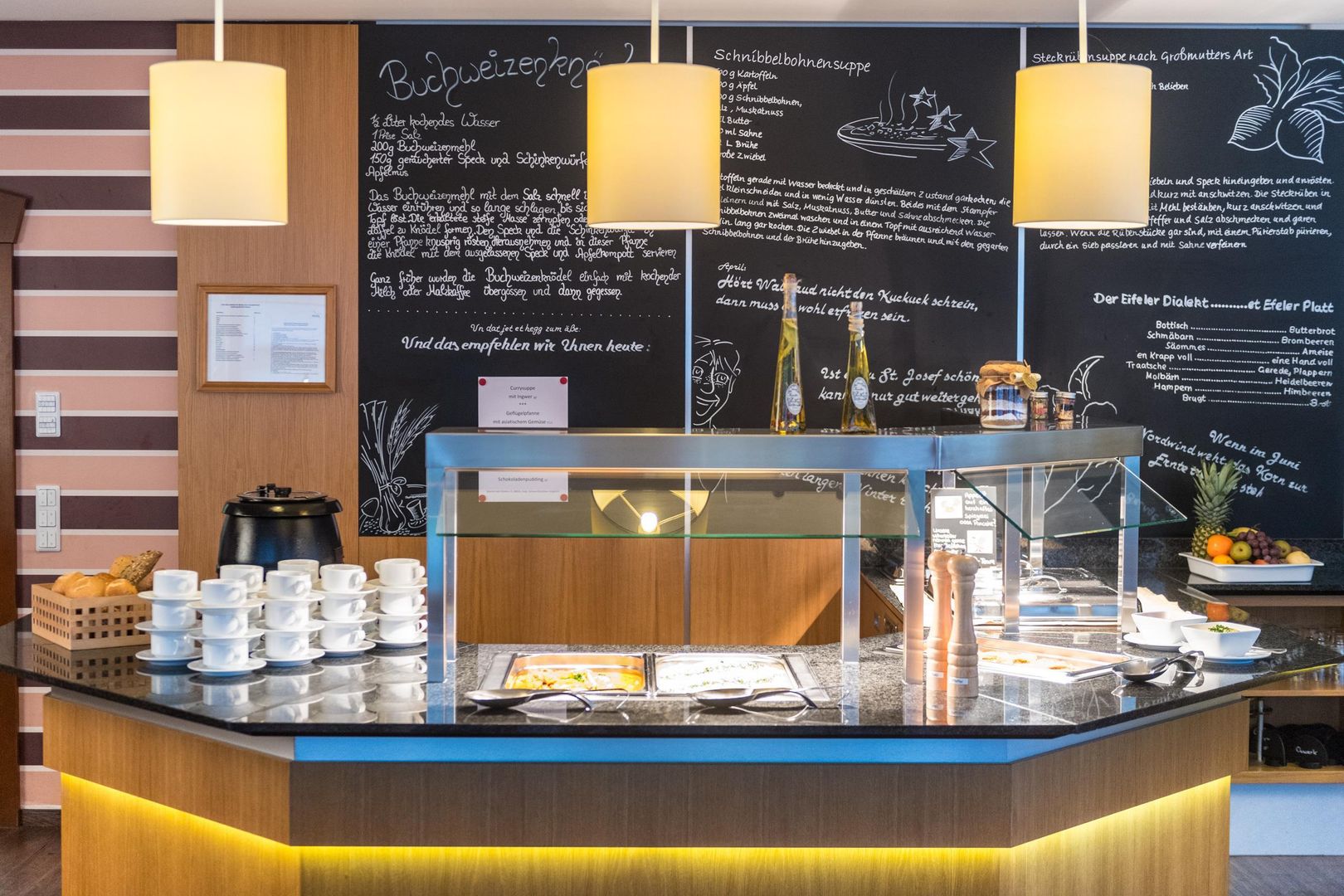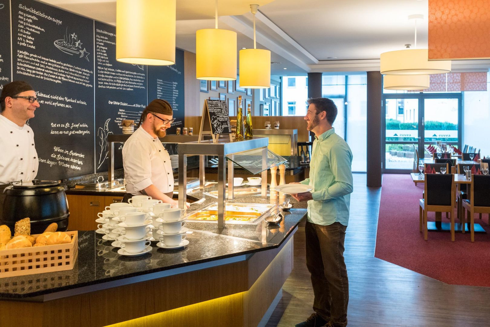 Le restaurant Euvea propose des spécialités régionales variées, qui changent tous les jours et sont présentées sous forme de buffet.