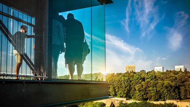 Ouvert en 2016, l'ascenseur en verre couvre 71 mètres et relie le centre-ville à la vallée de l'Alzette. Il offre une vue panoramique unique.