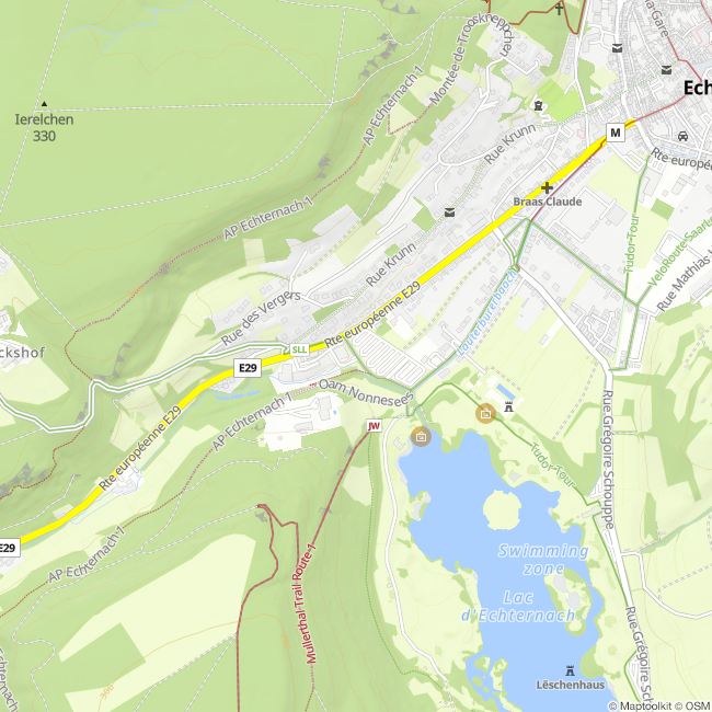 Le lac artificiel d'environ 30 hectare à Echternach offre de nombreuses possibilités de loisirs telles que le repos, les sports et la culture. Vous pouvez marcher, faire du vélo ou du patin à roulettes autour du lac.