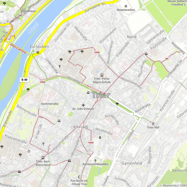 Le musée municipal du couvent Saint-Siméon de Trèves est consacré aux trésors artistiques et culturels du Moyen Âge au XXIe siècle. Le musée s’est développé à partir d’importantes donations de citoyens célèbres de Trèves. C’est grâce à cela que les collections sont très diversifiées. Elles comprennent peintures, sculptures,artisanat d’art, textiles coptes, meubles et statuettes d’Asie orientale. Le theme principal de l’exposition permanente est l’histoire de la ville. Des expositions temporaires régulières sont consacrées aux artistes de Trèves ou à des thèmes lies à la ville. Les collections sont présentées dans le couvent de Saint-Siméon, bâtiment roman du XIe siècle qui se trouve juxtaposé à la Porta Nigra. Le bâtiment lui-même est remarquable, car il possède l’un des plus anciens cloîtres à deux étages, une forme rarement conservée. Un audio guide est compris dans le prix d’entrée.