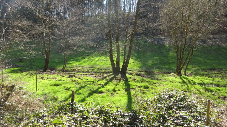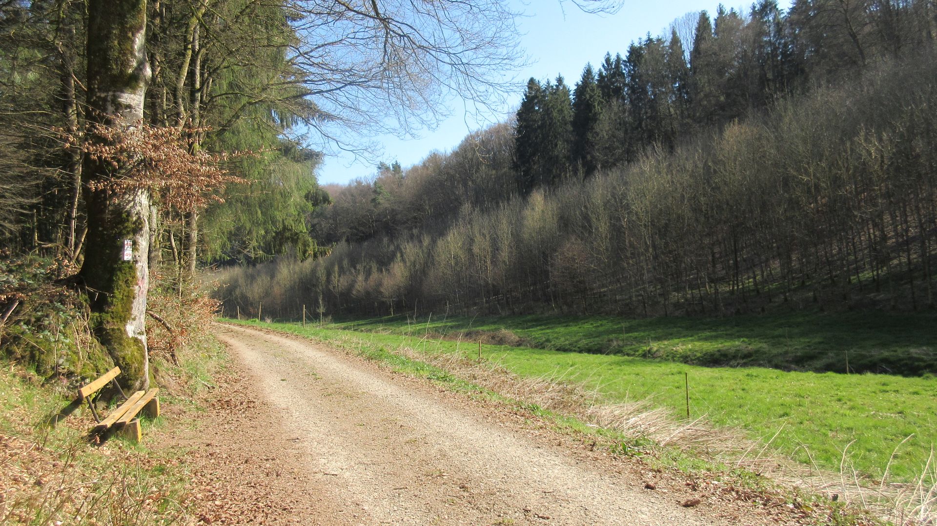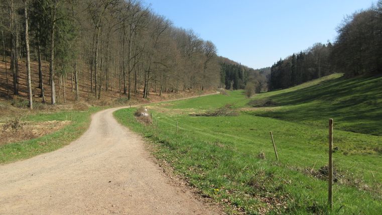 Nous commençons notre excursion d'une journée sur la place du village de Mettendorf. En longeant un peu la rue principale en direction de Sinspelt, nous arrivons par la rue "Im Weidig" derrière le terrain de sport dans le "Hangenbach" et suivons les panneaux pour le circuit du parc naturel Südeifel n° 48.