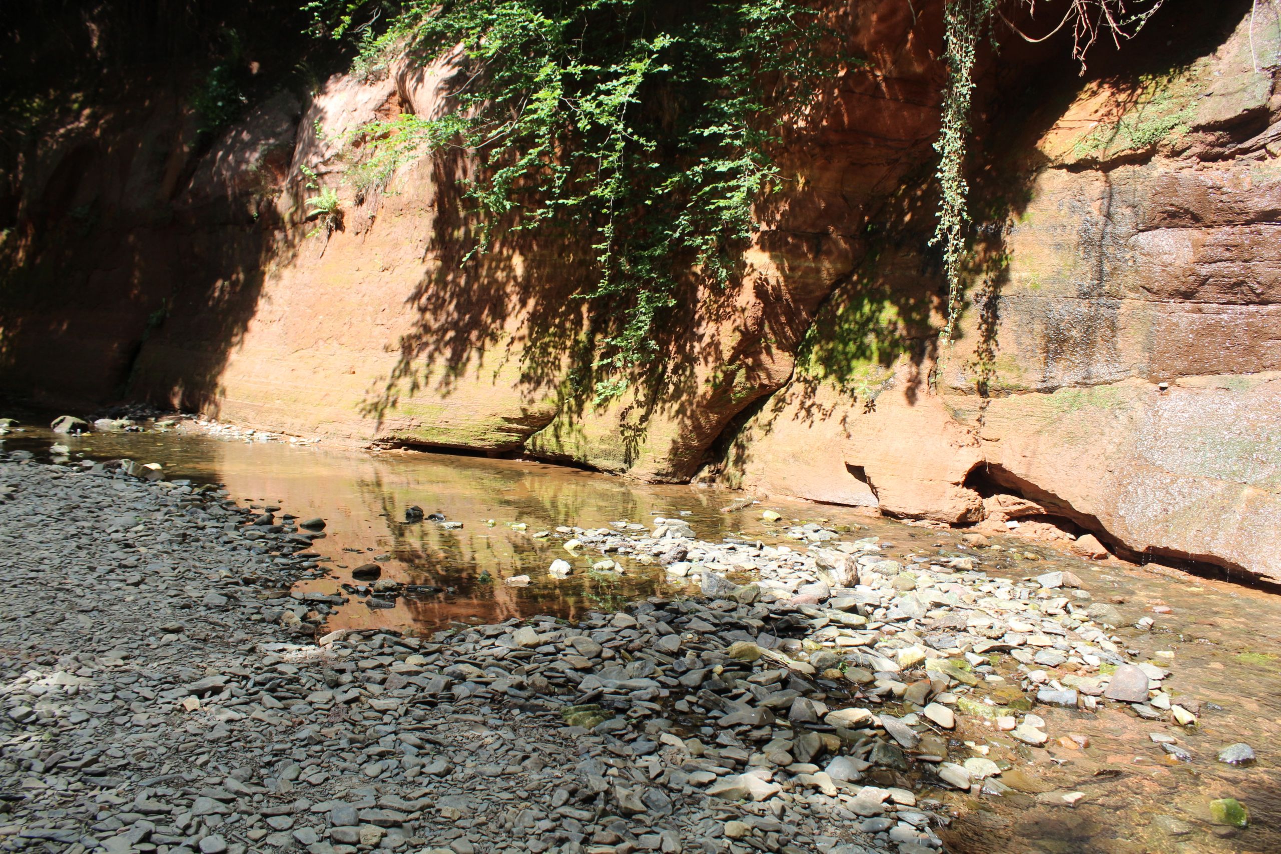 Nous profitons de la pause pour admirer la paroi abrupte et nous rafraîchir les pieds dans l'Enz.