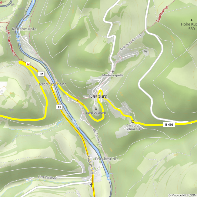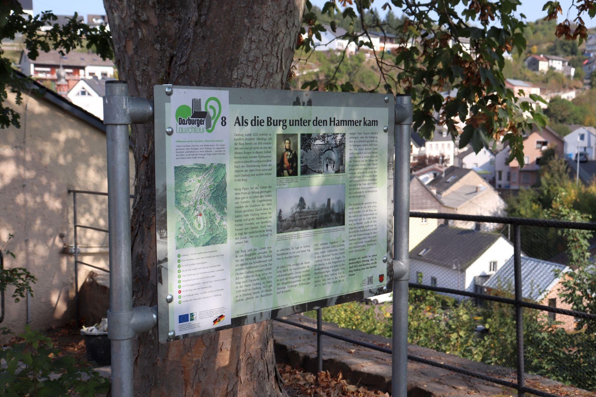 Dasburg à voir, à entendre et à s'étonner - c'est ce que proposent 10 stations audio dans le centre du village de Dasburg et dans la zone du château. Le tour audio commence au centre du village, dans la rue principale, devant le magasin de fleurs. Toutes les stations sont accessibles à pied. Lors de la visite de Dasburg, vous ferez un petit voyage dans le temps à des endroits choisis - du moins avec vos oreilles.