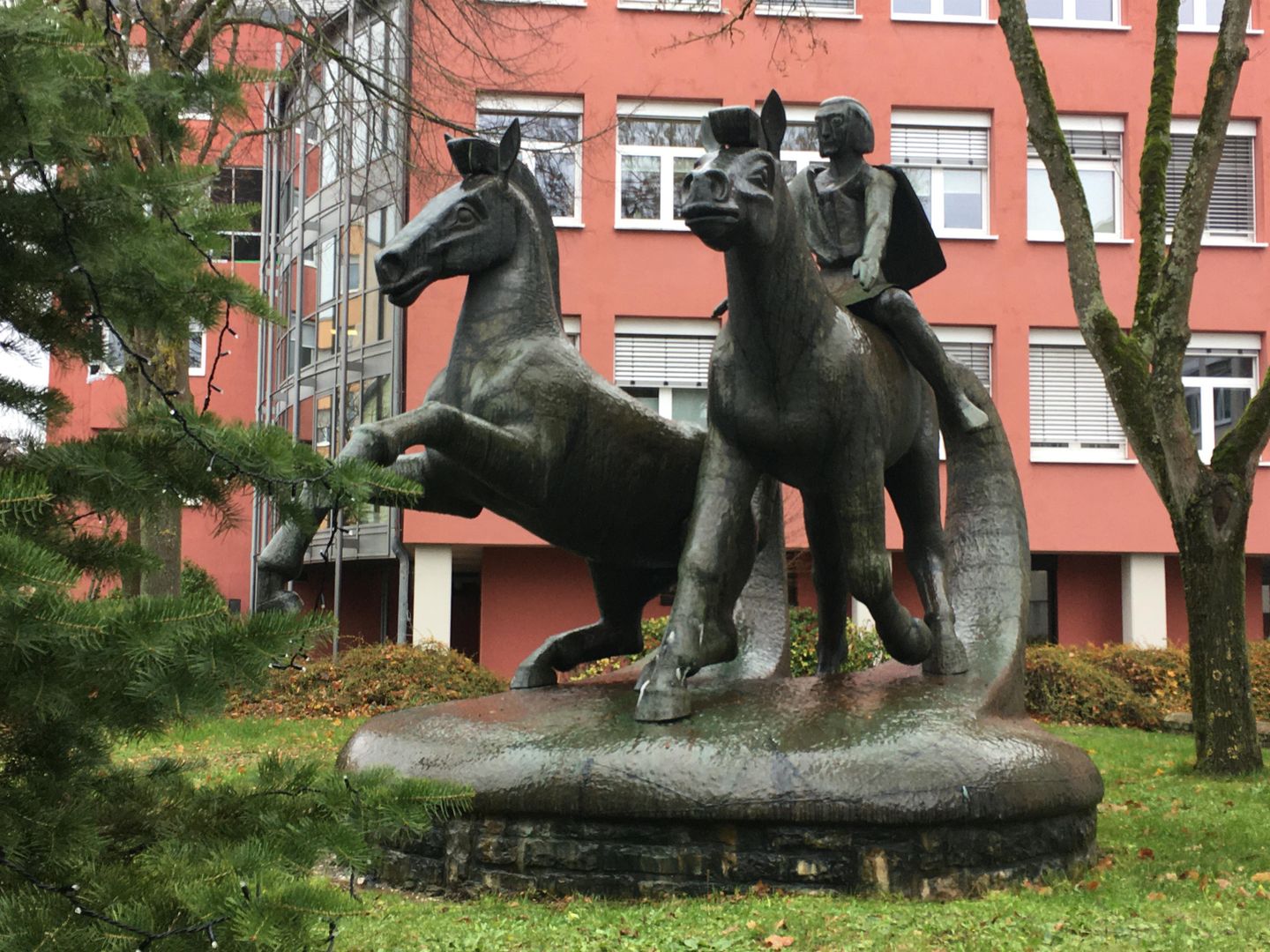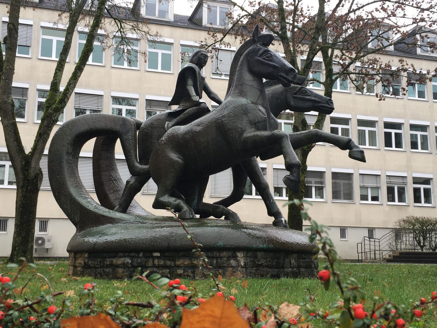Devant le service du conseil régional, la statue de bronze rappelle le passé celtique de la ville. Elle a été faite par la colonie d’artistes de «Weißenseifen» et représente un Treverer à cheval. Les Treverer, une tribu celte, vivaient dans notre région, quand César et ses légions ont, en 50 avant Jésus-Christ, occupé la région ouest du Rhin.