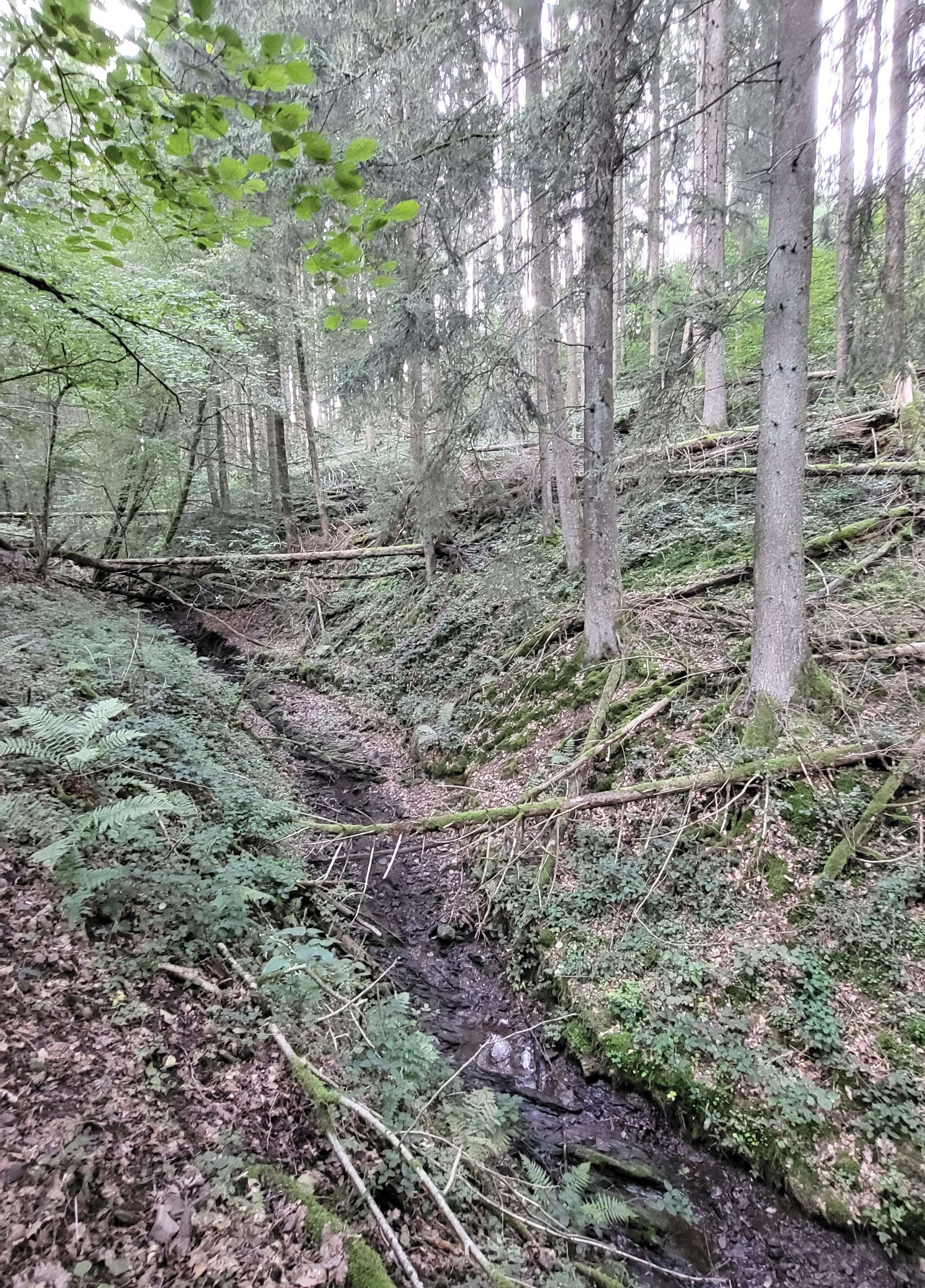 Le sentier de randonnée démarre au refuge de Lambertsberg et mène d'abord à une partie de la forêt par un sentier et un chemin de prairie. Après quelques mètres, on se retrouve dans la vallée idyllique du Dierbach. Le Dierbach passe en partie sous terre, après que le ruisseau a changé de cours suite aux inondations de 2021. Des sentiers ressemblant à une jungle avec des arbres en travers transportent le randonneur dans un autre monde.