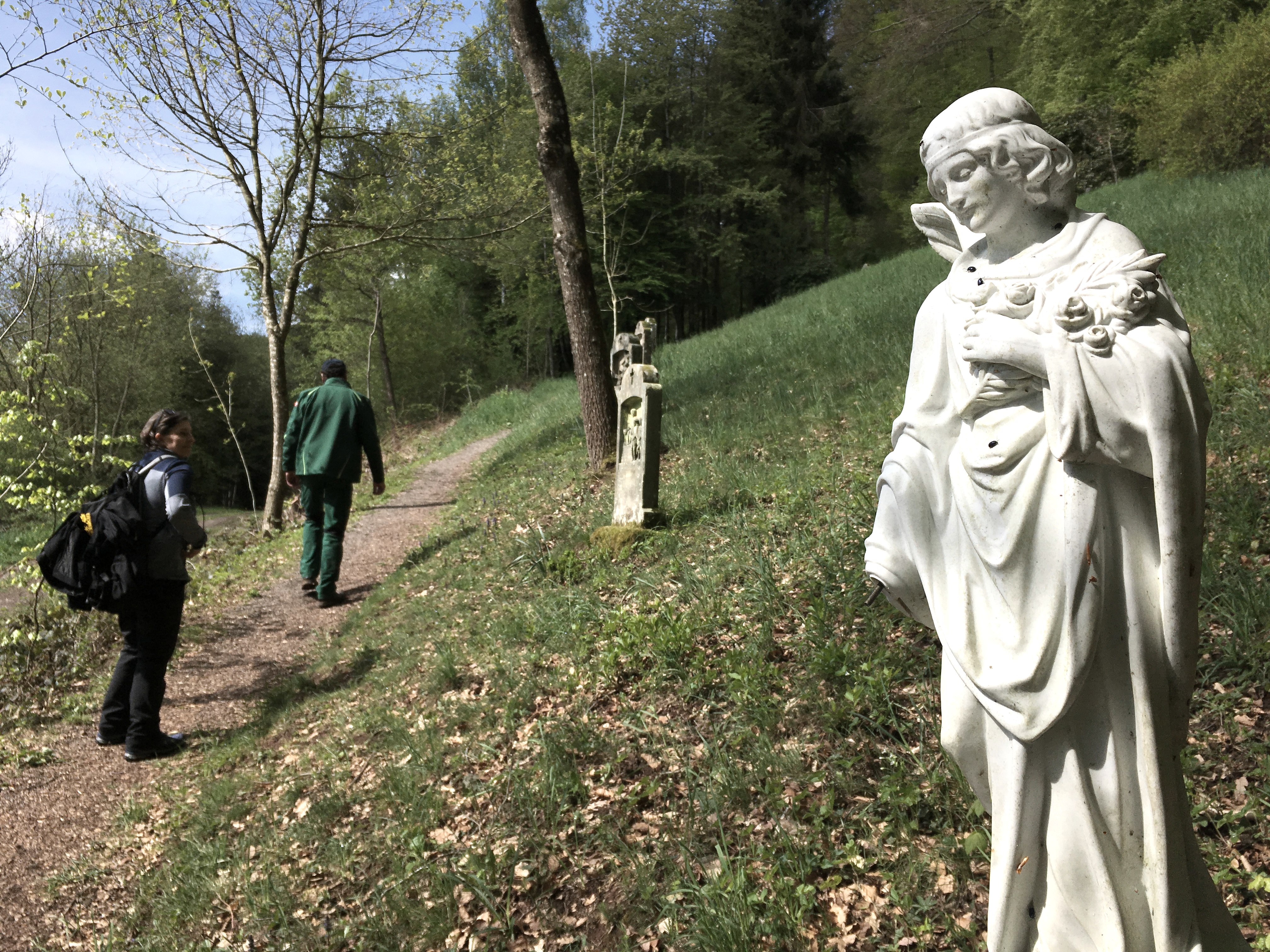 Depuis le parking du kiosque, la randonnée emprunte d'abord le chemin de ronde au bord du lac jusqu'au barrage. De là, on continue par le parking en direction de Wiersdorf. Après avoir traversé la Prüm, le chemin s'enfonce dans la forêt et, après un certain temps, on atteint l'ermitage idyllique. C'est ici qu'a vécu le pieux ermite Jakob Leisen de 1906 à 1945. Près de la chapelle datant de 1923, on trouve une grotte de Lourdes datant de 1925 et une colonne mariale datant de 1929/30 avec son chemin de croix à 14 stations. Ensuite, le chemin revient au lac de barrage.