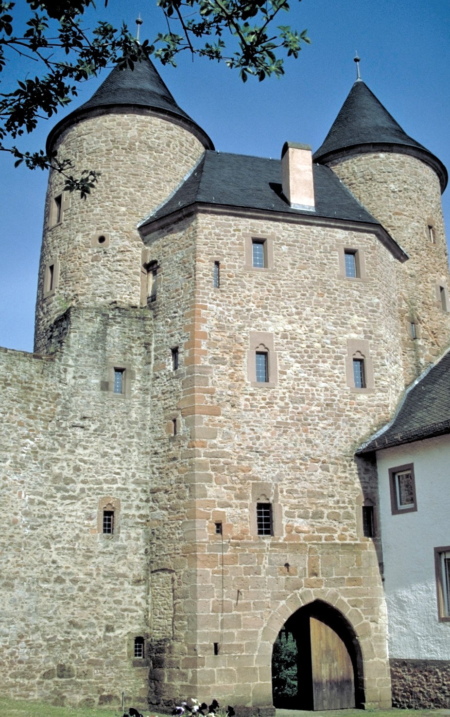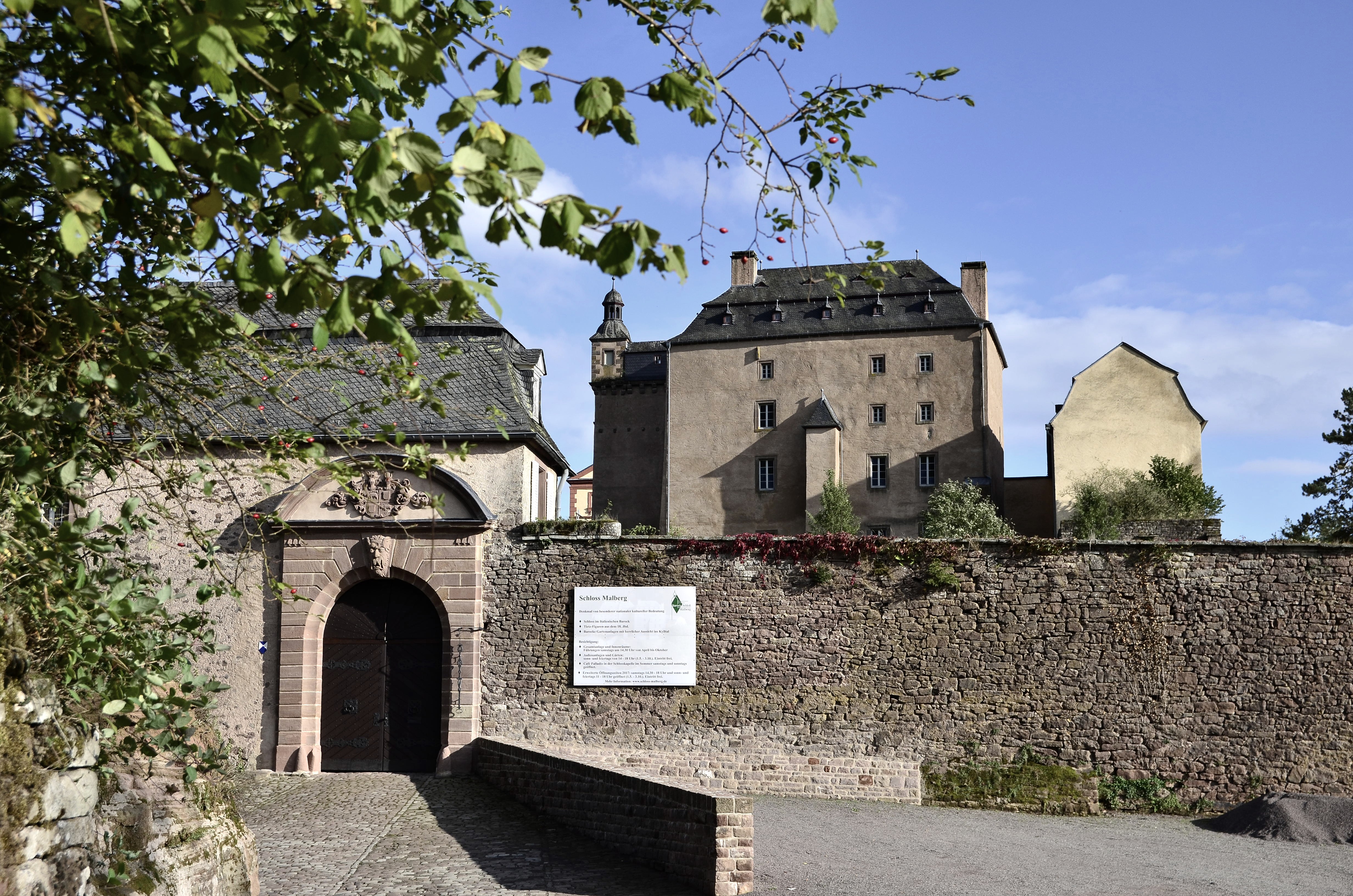 Après Malberg, prendre la Marienstraße en direction du nord sur la route >Am Annenberg< - en passant devant l'église et le cimetière, jusqu'à la place de l'église et le château sur un éperon de montagne (19,5 km).