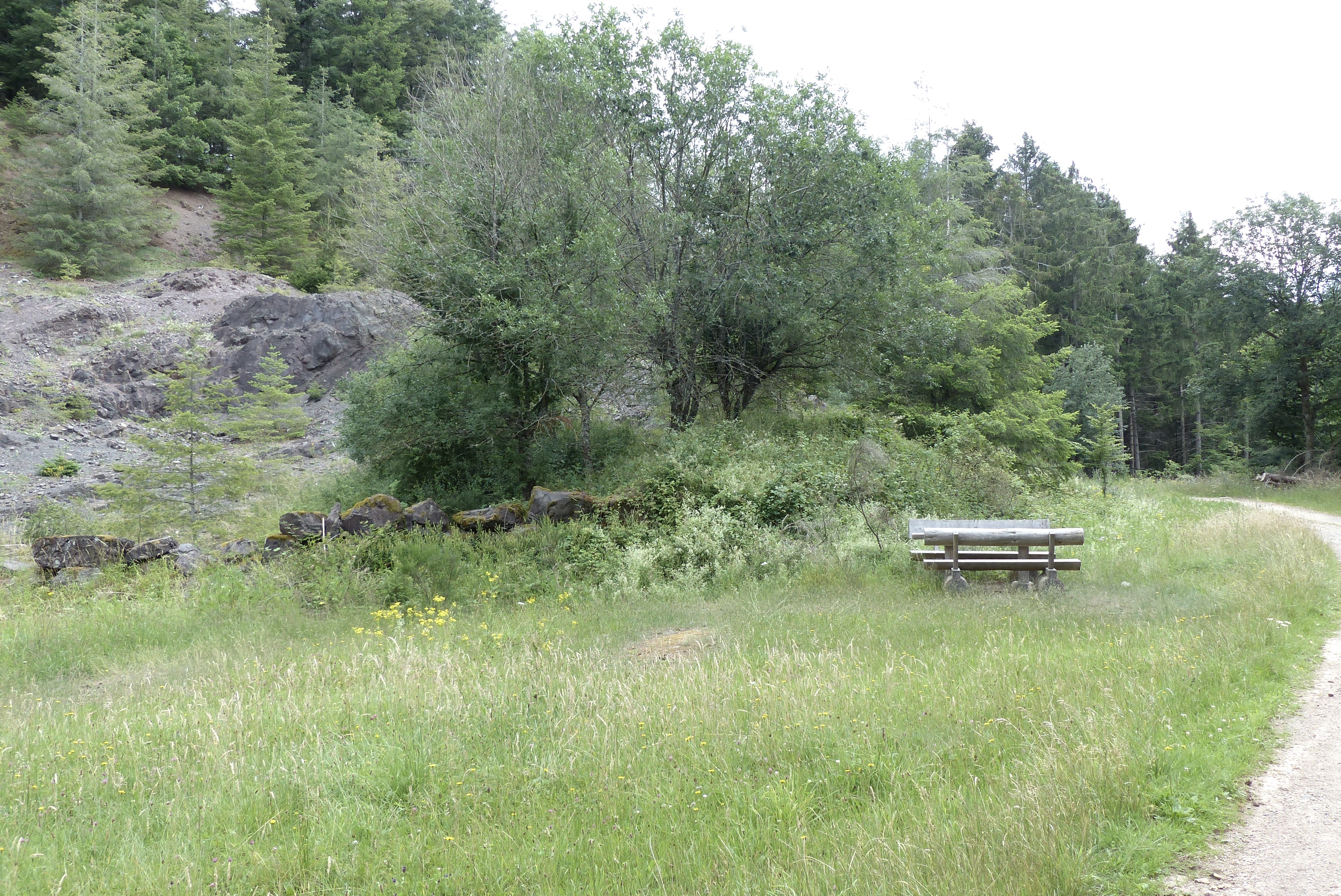Après avoir traversé la L 12, le chemin descend la vallée jusqu'au Staudenhof. Le "village abandonné" - la plus petite commune d'Allemagne au 19e siècle avec 18 ha - comptait vers 1821 128 habitants. Pendant les heures creuses, les habitants gagnaient leur vie en fournissant du minerai à l'usine sidérurgique de Merkeshausen, la plus grande du sud de l'Eifel à l'époque. Jusqu'en 1981, une seule famille vivait encore dans le hameau de Staudenhof, qui, avant que la voiture ne règne en maître, était florissant et florissant, et avait même sa propre école et son propre instituteur. Aujourd'hui, l'ancienne école est la seule maison encore habitable dans ce lieu à l'écart du monde. Depuis le Staudenhof, le circuit emprunte ensuite d'étroits sentiers de randonnée le long de la Prüm, à travers la "jungle", en direction de Mauelermühle, puis monte à nouveau régulièrement jusqu'à Atzseifen et enfin jusqu'au point de départ à Plütscheid.