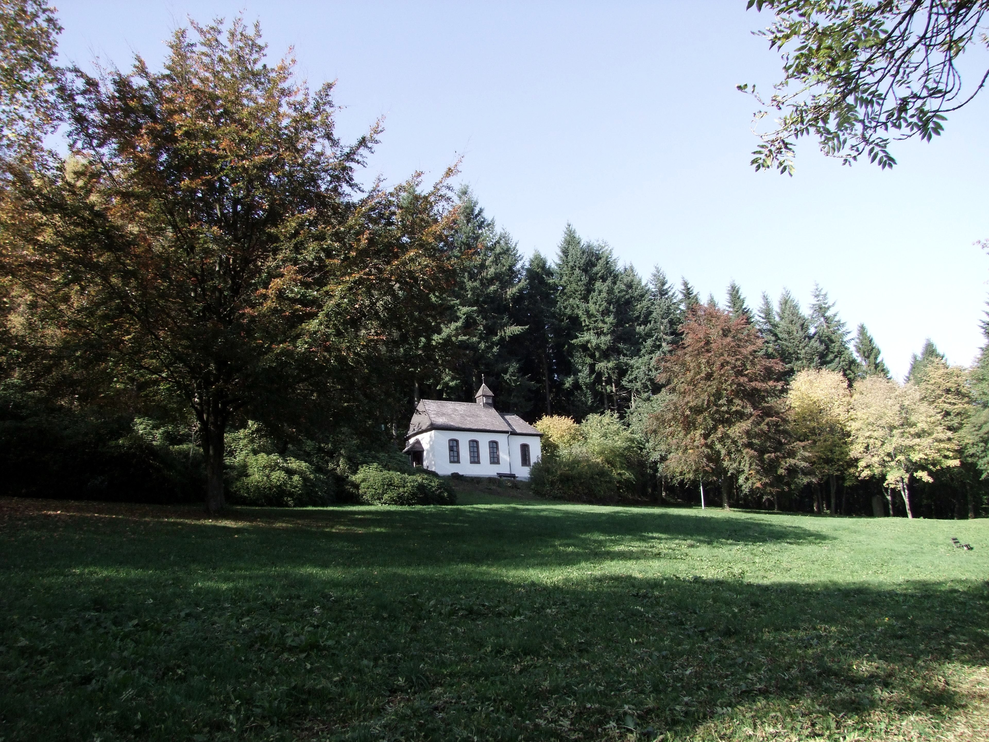 Le chemin passe devant le Calvaire, qui a été pratiquement déchiré en 1949 par l'explosion de munitions qui y étaient stockées, de sorte que quatre ans après la fin de la Seconde Guerre mondiale, la mort et la destruction ont de nouveau régné à Prüm. Aujourd'hui encore, un énorme cratère domine le sommet et un monument commémoratif rappelle ce terrible événement. Mais pour nous, randonneurs, la montagne offre aussi de magnifiques vues sur Prüm. Un détour par la jolie chapelle du Kalvarienberg, reconstruite après la catastrophe, avec vue sur Prüm et sur le chemin de croix, est vivement conseillé à chacun. Depuis le sentier panoramique lui-même, le regard peut se porter sur Niederprüm et sur la vallée du Mehlenbach avec sa lande de genévriers et bien au-delà, jusqu'en Belgique.