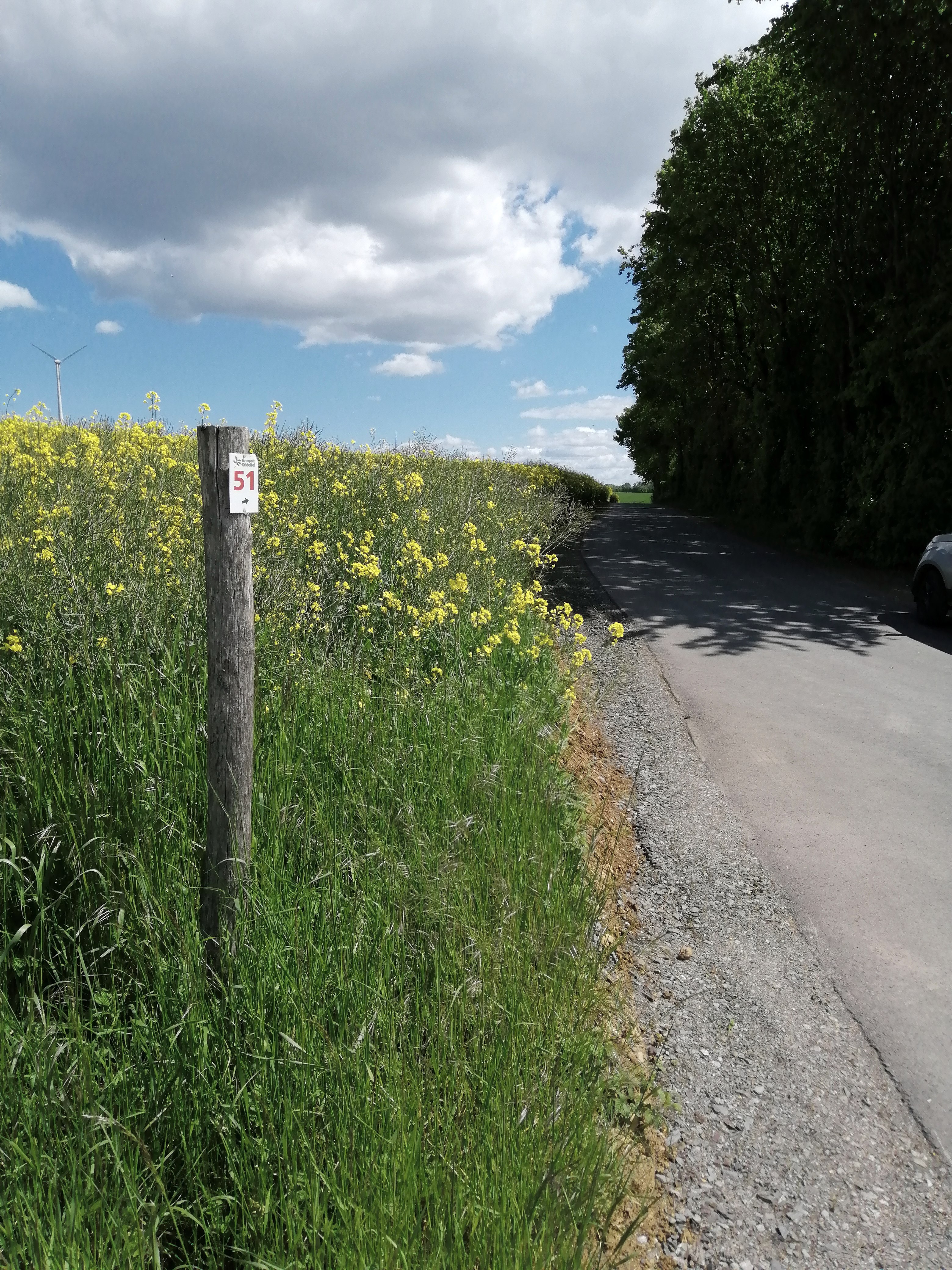 Le sentier de randonnée 51 séduit par sa diversité. Il traverse aussi bien des forêts denses et des chemins naturels que des graviers, des chemins de terre et des chemins agricoles.