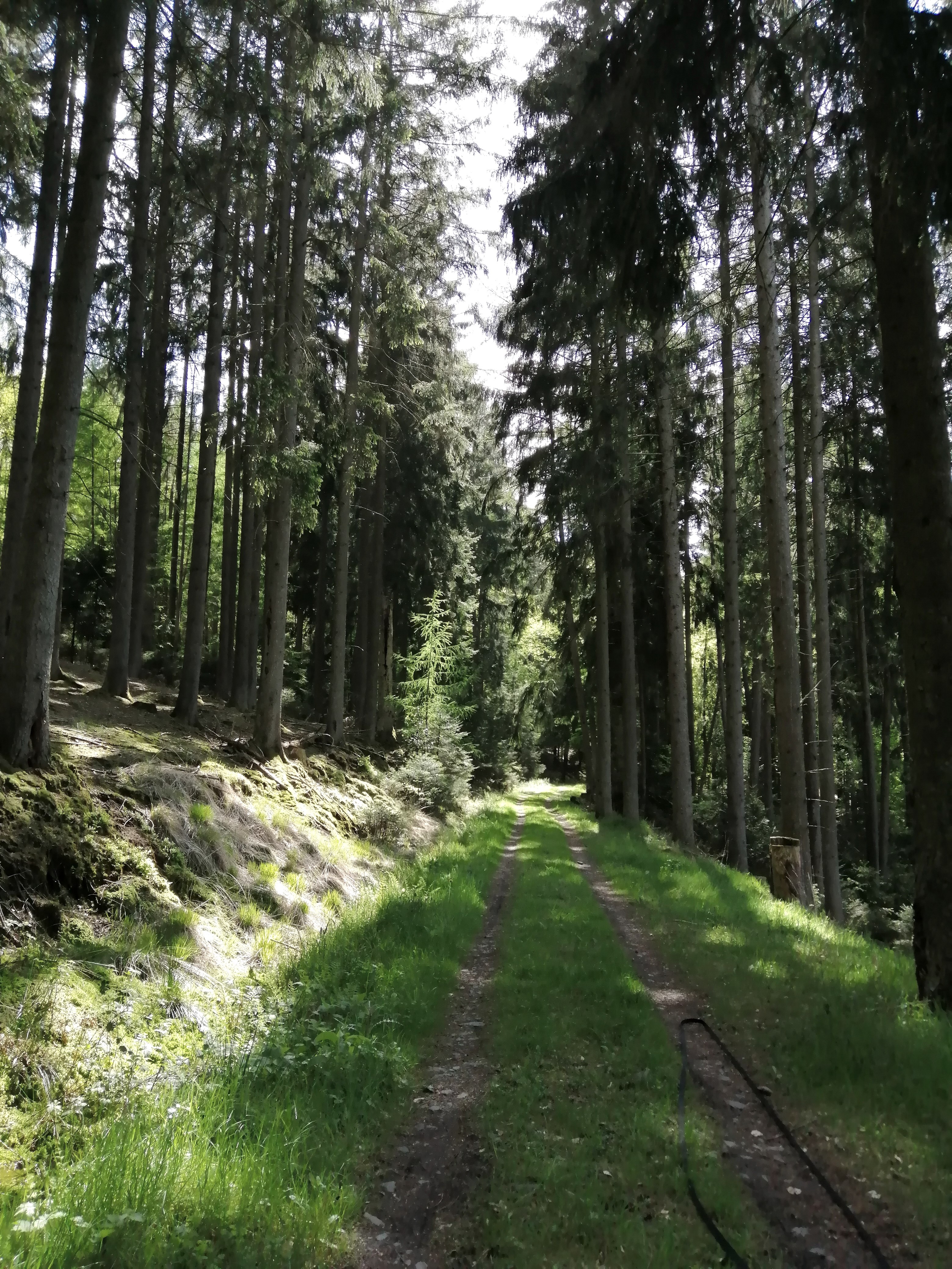 La forêt de feuillus se transforme en une forêt de conifères très dense. On marche sur les aiguilles de sapin comme sur un nuage et on sent le parfum de la forêt.