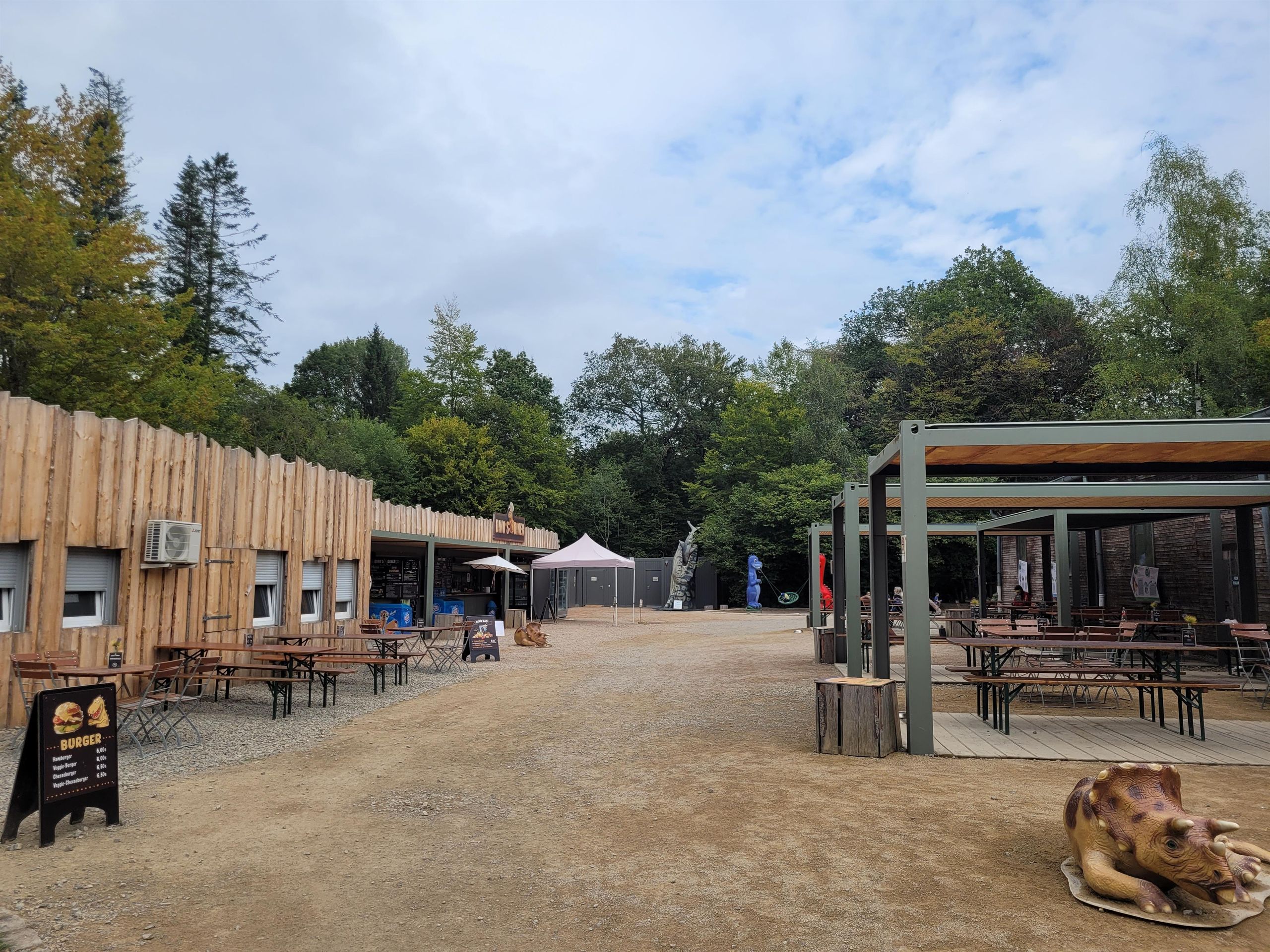 In Dino's Diner, der Gastronomie im Dinosaurierpark Teufelsschlucht, gibt es Snacks und Gerichte für den kleinen und den großen Hunger, für kleine und große Besucher, für Fleisch- und für Pflanzenfresser: Pommes frites und Chicken Nuggets, Burger und Bratwurst, Tostis und Falafel, viel Vegetarisches und Veganes und alles auch als Menü. Dazu gekühlte Getränke, Eis, Kuchen und Gebäck und Kaffeespezialitäten von Mondo del Caffè, der Kaffeerösterei im nahegelegenen Echternach.