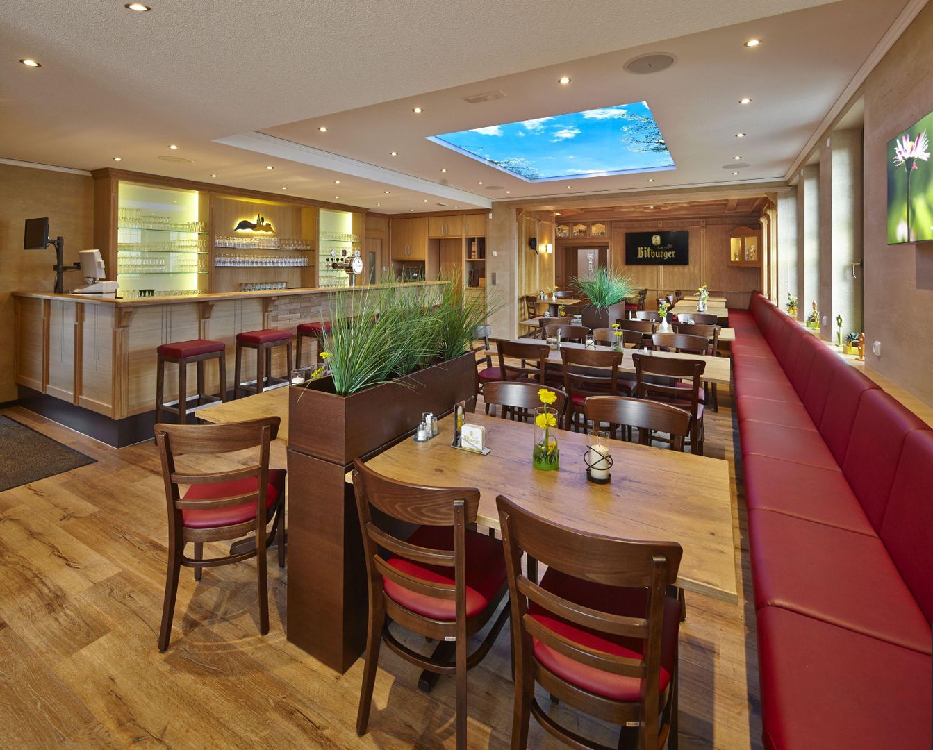 Gemütliches Restaurant mit regionaltypischen Speisen. Warme Küche Montag bis Samstag von 15-21 Uhr. Geänderte Öffnungszeiten an Feiertagen.
