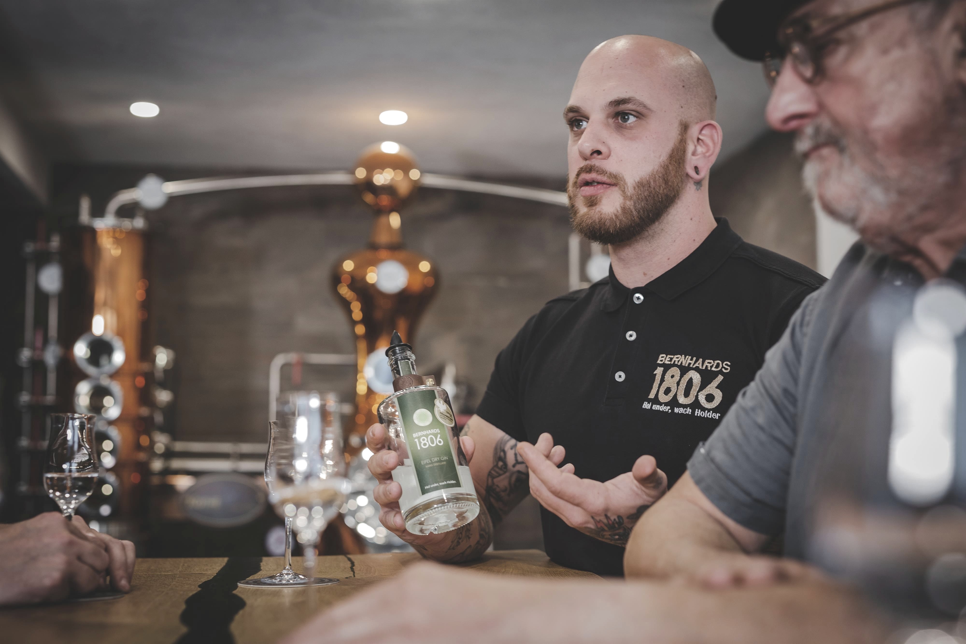 DE ORIGIN Direct tegenover de kleine kapel uit 1923 in het Eifeldorp Wolsfeld staat de voormalige boerderij van Bernhard Zender. Hier worden de beste Eifel-fruitbrandewijnen geproduceerd, nu in de 7e generatie. Al in september 1806 kreeg de voorouder Gregore Ewerhardt het recht om appels en peren te distilleren. Twee jaar lang heeft Bernhard Zender in de eigen distilleerderij geprutst om het recept voor de jenever van zijn verbeelding te vinden. Daarbij testte hij de intensiteit van verschillende botanische middelen tijdens de maceratie. Steeds weer veranderde hij de samenstelling totdat hij de perfecte smaak en het geheime recept voor BERNHARDS 1806 had ontwikkeld.