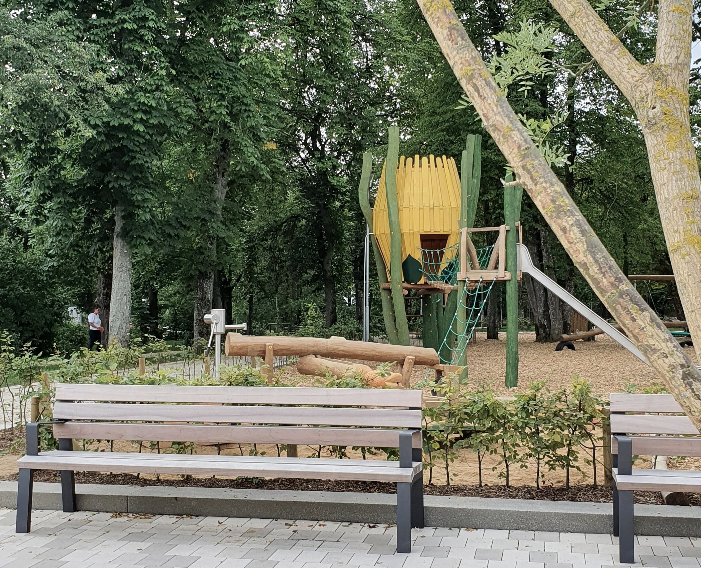Het gemeenschapspark "Maximiner Wäldchen" heeft een speelplaats met klimvoorzieningen en waterfonteinen. water fonteinen. Bovendien wordt er een kiosk gebouwd met toiletten voor gehandicapten, inclusief een verschoontafel.