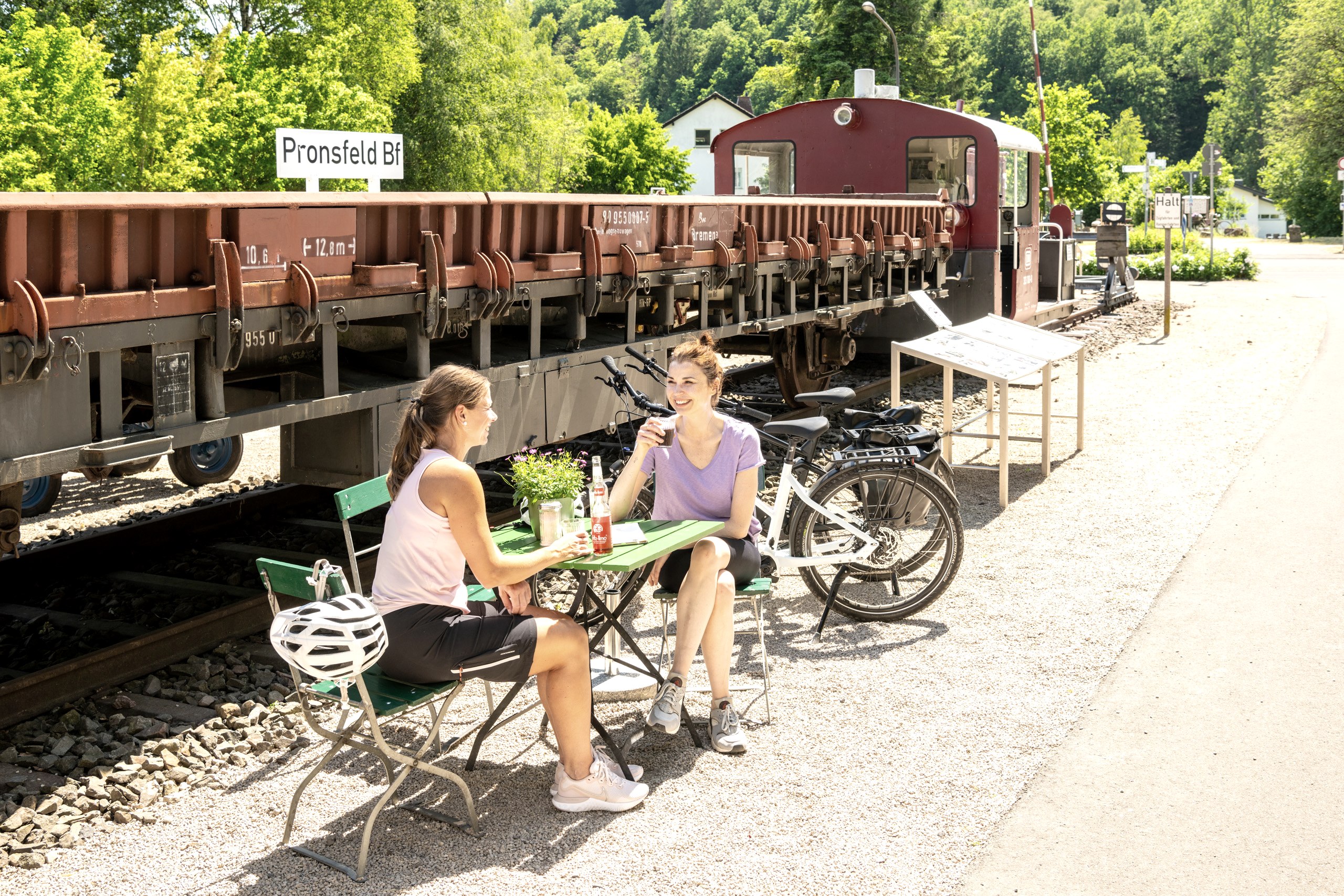 stijgingen, tenminste wanneer men via de tunnel onder de heuvelrug bij Bleialf door rijdt. Tussen Prüm en St. Vith loopt het Eifel-Ardennen-fietspad 37 kilometer lang over een voormalig spoortracé. Een paar interessante weetjes over het 'spoorweg-tijdperk' geven de informatieborden in Pronsfeld en bewaard gebleven getuigen, zoals een kleine Deutz-locomotief. Een heus spoorweg-openluchtmuseum, waar je echt een paar minuten de tijd voor moet nemen. Langs de Prüm, de Alfbach en de Ihrenbach fiets je over talrijke bruggen en