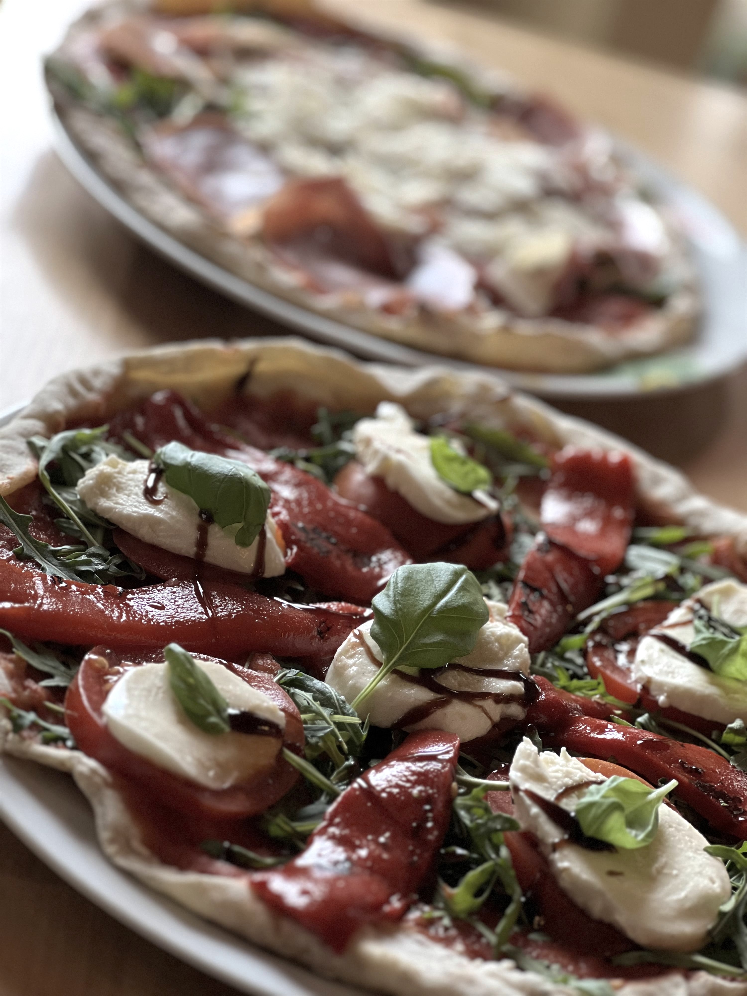 Steengebakken pizza, diverse salades, pastaspecialiteiten.