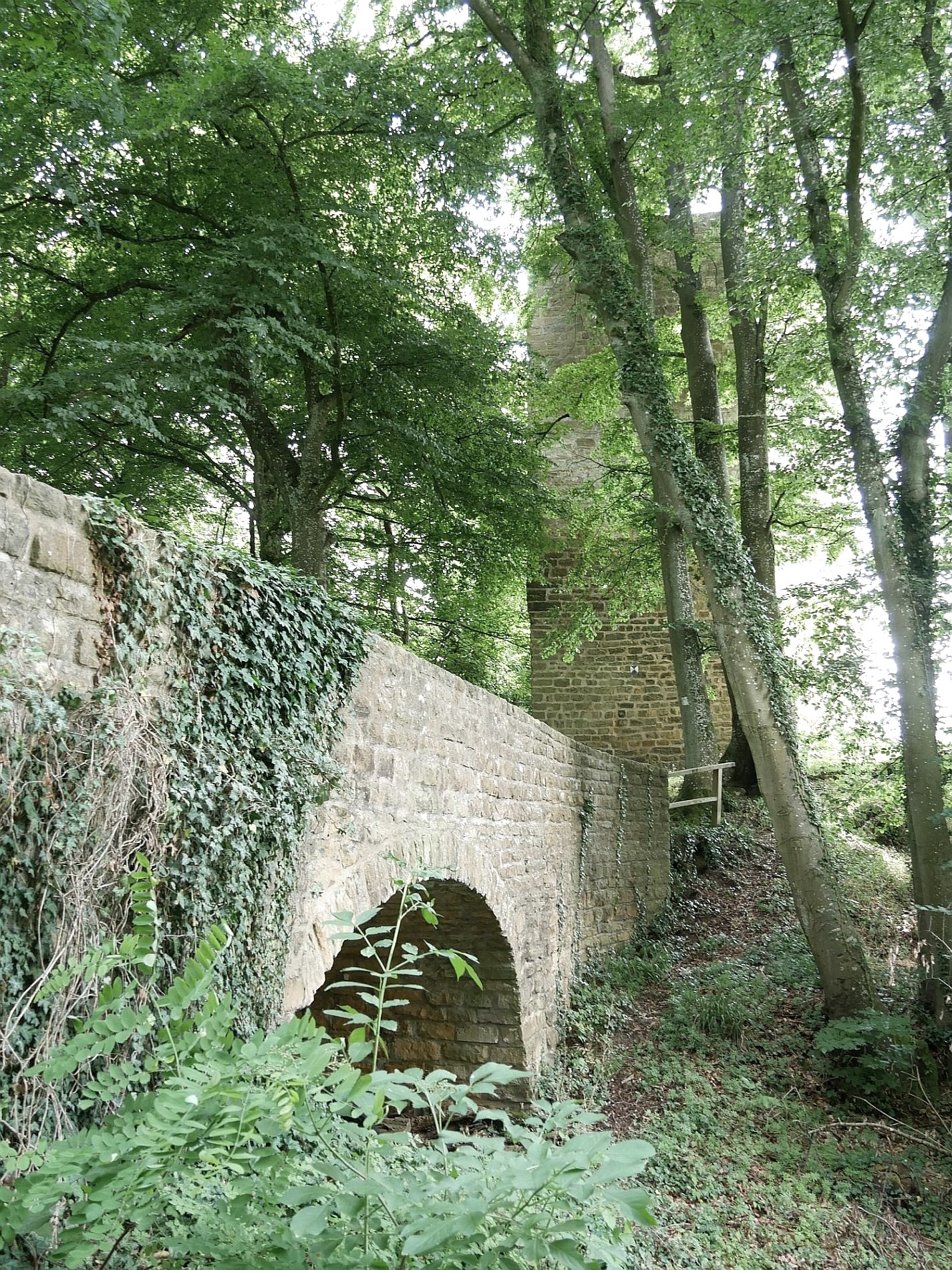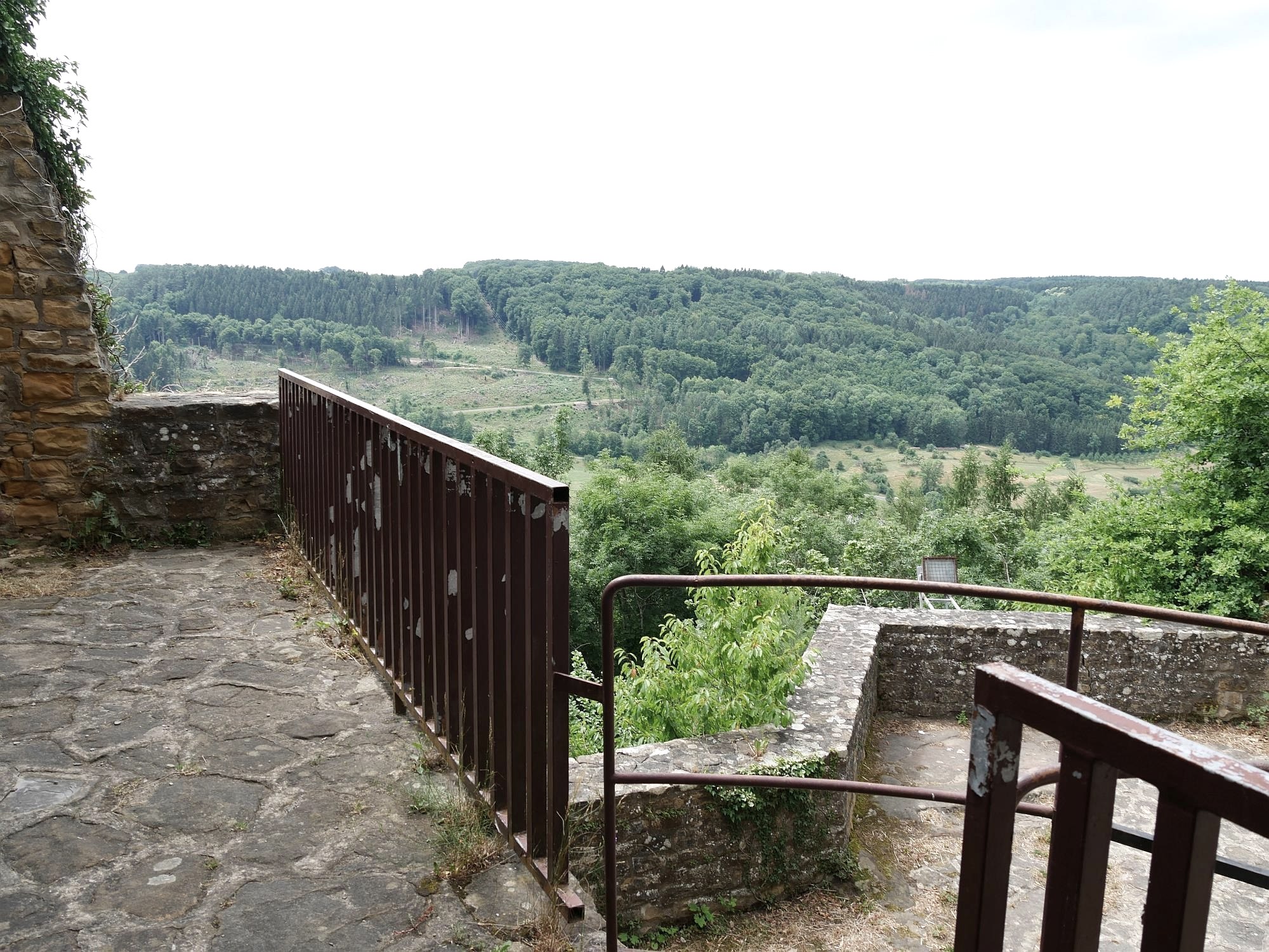 Tegenwoordig loopt het pad naar de kasteelruïne over de slotgracht die vroeger de oostkant beveiligde. De vijfhoekige verdedigingstoren van het kasteel dateert uit de 12e en begin 13e eeuw. Als je naar de top klimt, word je beloond met een fantastisch uitzicht over de Prüm vallei. De zuidelijke gevelmuur van het woongedeelte, de palas, is nog steeds bewaard gebleven. Rechts en links van de raamopeningen zie je nog de zitjes vanwaar je naar beneden kon kijken. De gewelfde kelder is ook nog toegankelijk via een trap.