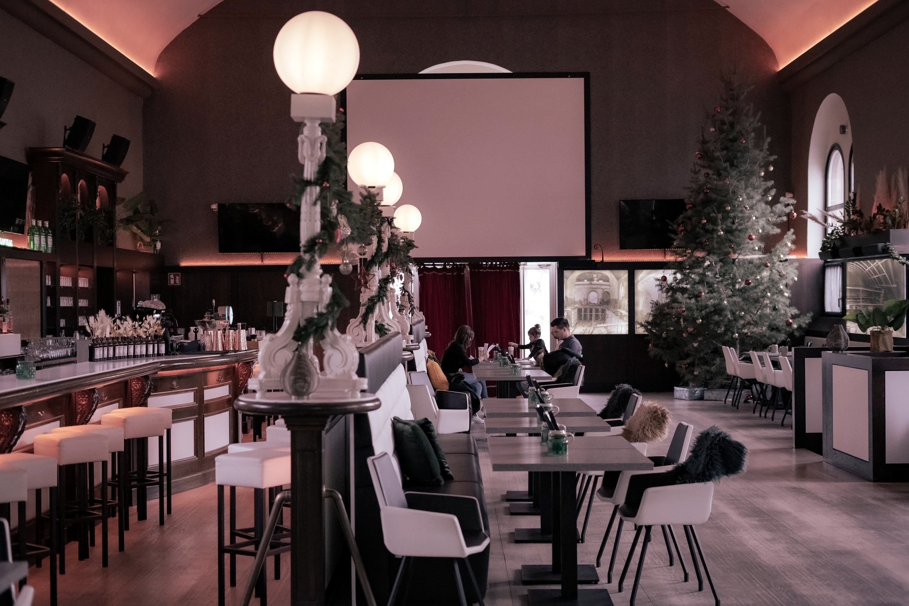 Moderne internationale keuken. Cocktailbar/restaurant in de geklasseerde voormalige gymzaal van het Bitburger Gymnasium.